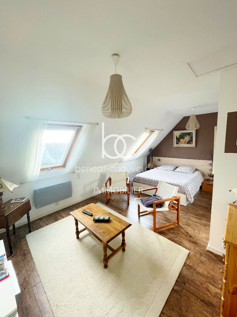 L'étage est entièrement dédié à l'espace nuit : un dégagement avec bibliothèque dessert trois chambres supplémentaires, dont l'une bénéficie d'un grand dressing intégré. Une salle de bains complète et un WC séparé complètent cet étage.
