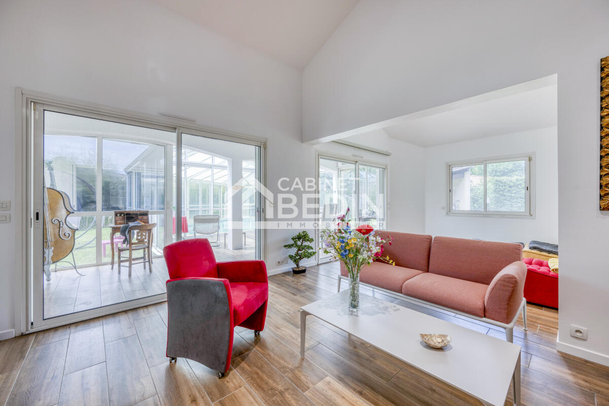 PESSAC. Découvrez cette magnifique maison de plus de 230m² en quasi totalité de plain pied, située dans un quartier calme et prisé de Pessac. Cette propriété non mitoyenne offre un espace à vivre de 75m², des chambres spacieuses et bien aménagées, offrant confort et intimité. Les 7 pièces de la maison permettent de multiples possibilités d'aménagement, adaptées aux besoins de chacun. Depuis la terrasse couverte vous accédez directement à une piscine intérieure, idéale pour en profiter toute l?année. Avec une parcelle de 1500m², cette maison est idéale pour ceux qui recherchent tranquillité et espace.
