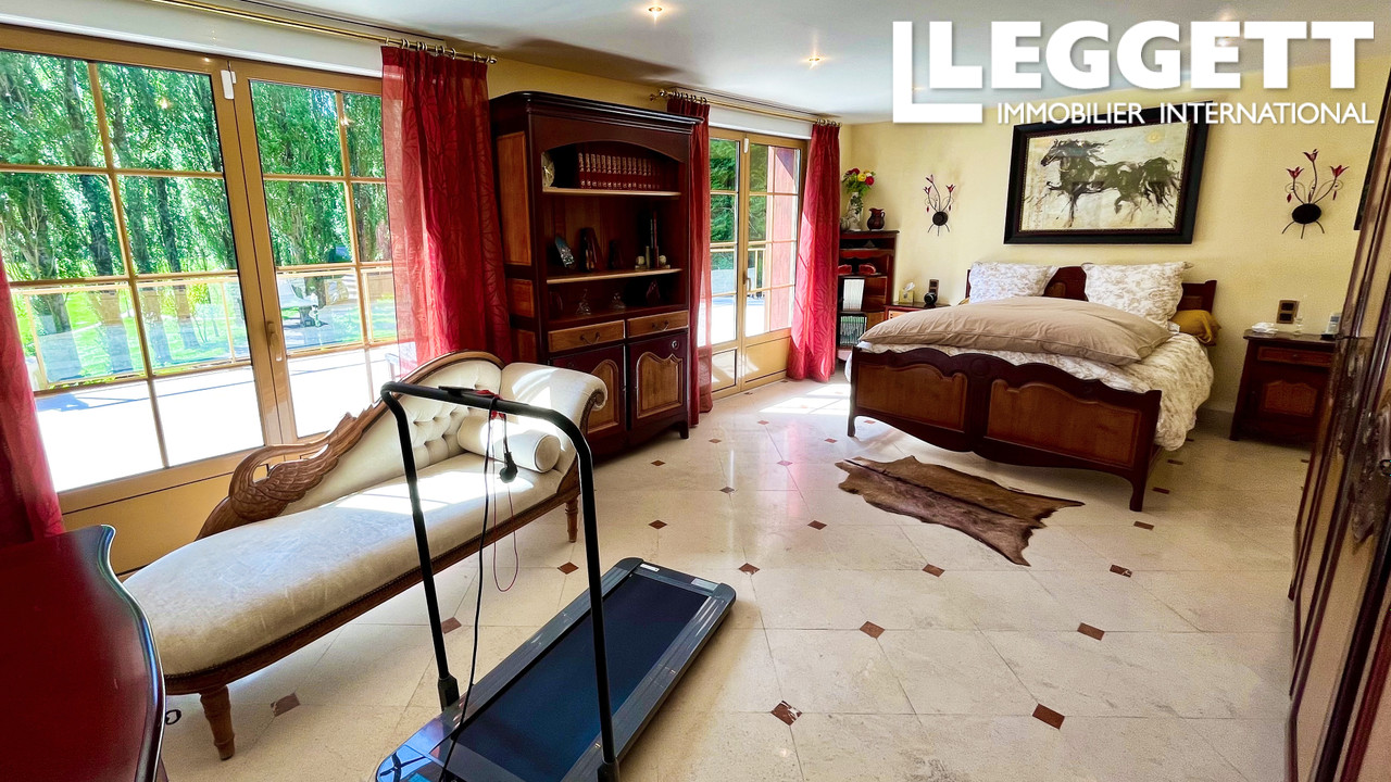 La maison comprend un grand séjour-salle à manger de 105 m² avec cheminée monumentale en pierre, complété par une cuisine ouverte, 7 chambres, 1 salle de bains et deux salles de douche. L'ensemble des pièces du rez-de-chaussée ouvrent sur la grande terrasse panoramique orientée Sud et Ouest avec vue sur la campagne environnante.