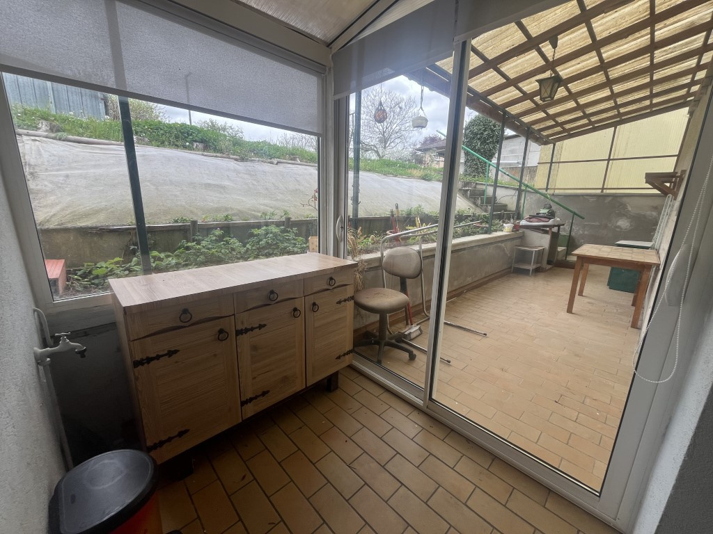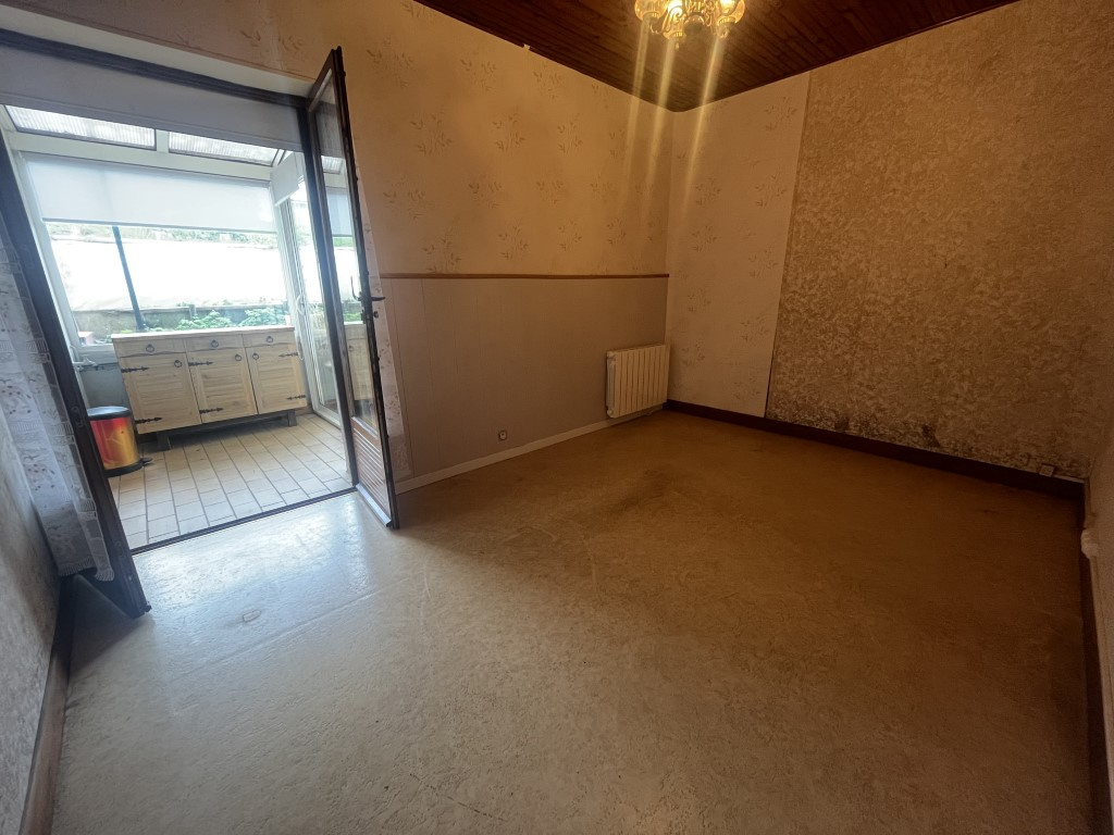 Entrée par une véranda sur salle à manger - Cuisine avec accès extérieur terrasse, jardin - Salon - 2 Chambres - Salle de douche - WC indépendant