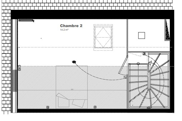 Le second étage est dédié à une grande chambre avec vélux.