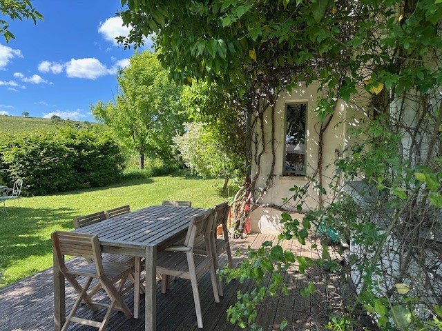 Édifiée sur plus de 5 000 m2 de terrain, elle bénéficie d'une vue incroyablement dégagée plein ouest sur les vignobles, d'un calme absolu et d'un cachet irrésistible.