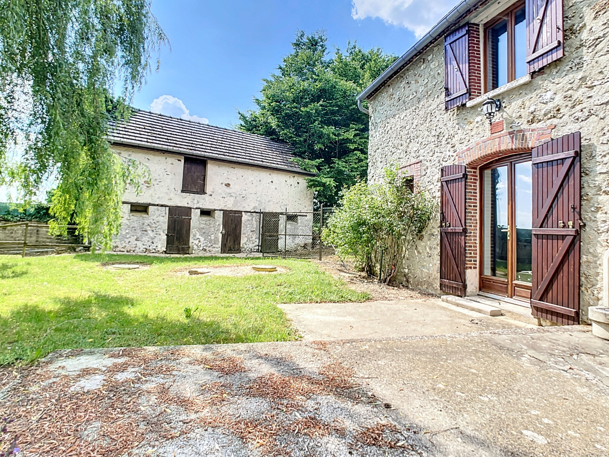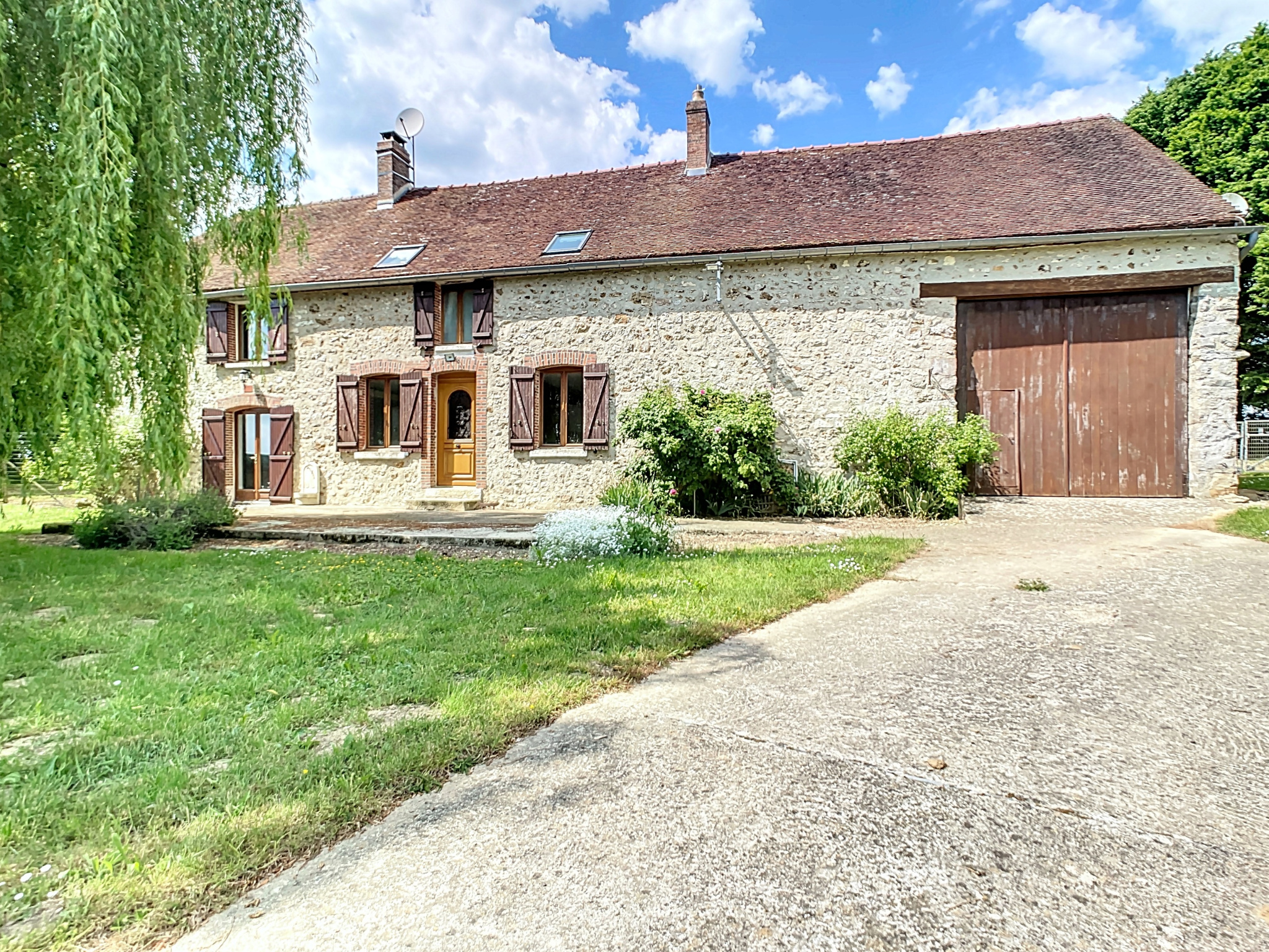 MOINS DE 30 MINUTES DE LA FERTE GAUCHER, Secteur MONTMIRAIL, Fermette entièrement rénovée avec vie de plain-pied située à moins de 10 minutes de MONTMIRAIL, comprenant : entrée sur pièce de vie avec cuisine ouverte aménagée, couloir, salle d'eau, toilettes et chambre, à l'étage couloir et palier desservant quatre chambres, salle d'eau et toilettes, attenant à la maison : cave, chaufferie, grange, en annexe, dépendance, mare, cour sur l'avant, terrain, le tout sur une parcelle de 4150 m2 environ.