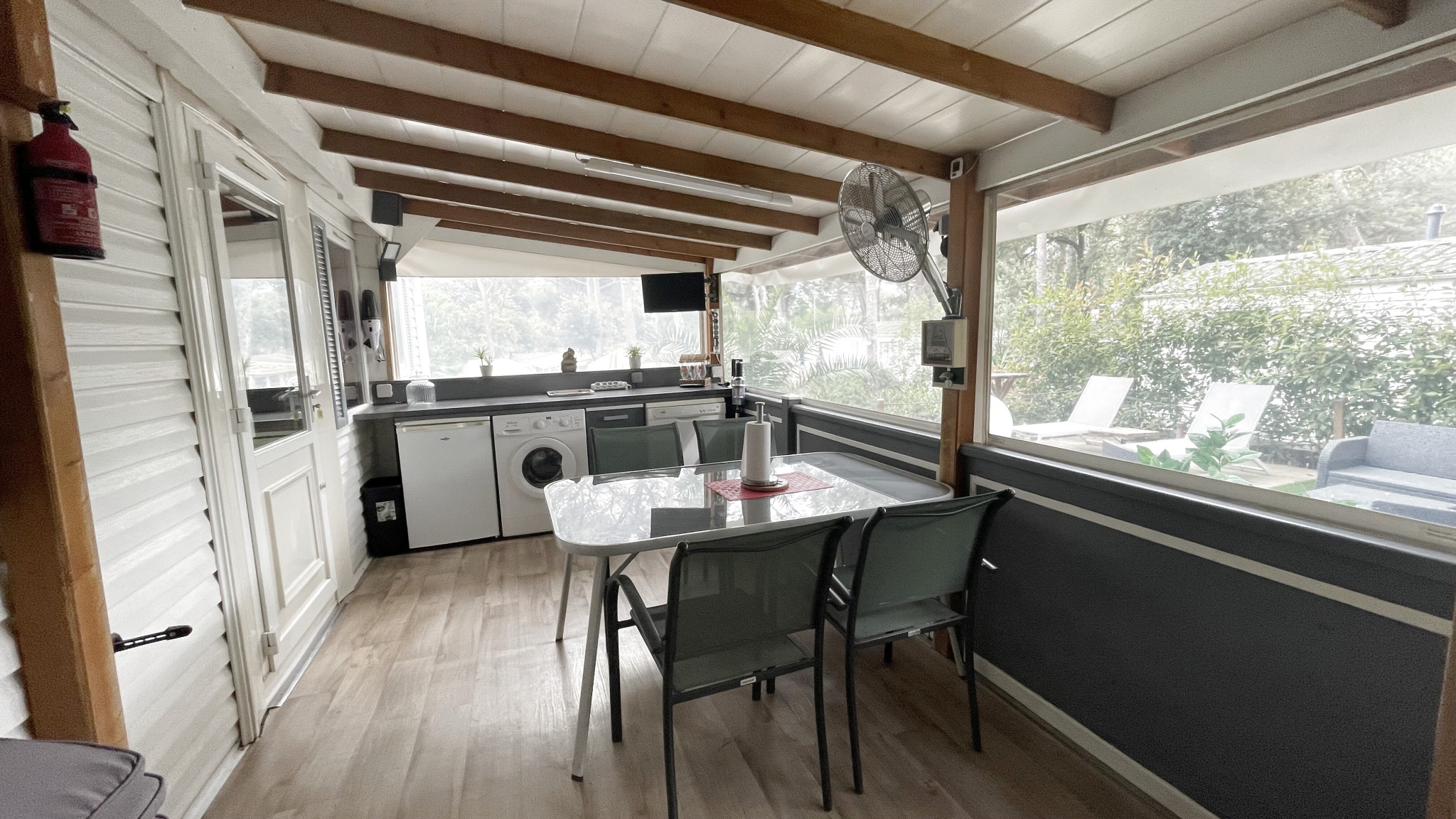 Mobilhome de marque IRM modèle Supe Octalia de 37m2 climatisé comprenant un séjour, une cuisine équipée, 3 chambres, 1 salle d 'eau ,1 wc, une terrasse couverte, fermée , une belle terrasse extérieure. Vendu meublé et tout équipé sur une belle parcelle de 160m2 environ.