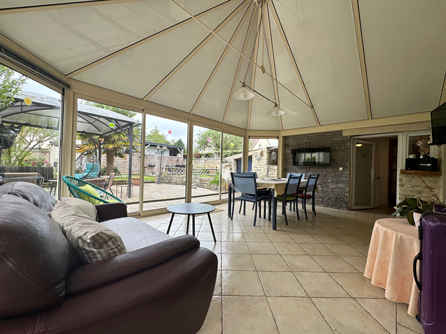 À seulement 15 minutes de Caen coté Ouest, cette maison en pierre du XIXe siècle séduira les amoureux de l'ancien par son authenticité et son cachet, avec ses murs en pierre apparente et ses poutres. Elle offre une véranda lumineuse, un séjour chaleureux avec une belle cheminée, une cuisine aménagée et équipée, ainsi qu'un WC et une buanderie. À l'étage, deux chambres et une salle d'eau avec WC, puis une grande chambre sous les combles. L'ensemble s'étend sur un terrain clos avec un garage de 40 m² et un carport.