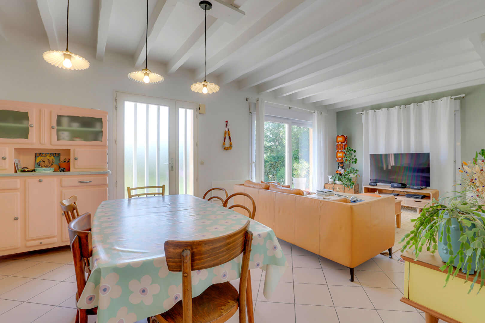 Côté extérieur: un joli terrain de 725m² pouvant accueillir une piscine, et une agréable vue sur la pinède...