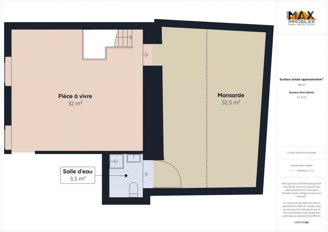Cet appartement F1 bis situé au 3ème et dernier étage, sous les toits, au sein d'une petite copropriété du centre-ville ; proximité de toutes les commodités à pied (commerces, restaurants, boulangeries, collège, école primaire) il bénéficie de très beaux volumes dans la pièce de vie avec une belle hauteur sous plafond, et d'une seconde pièce mansardée, environnement très calme?; le parking de la gare est à 5 minutes à pied, des travaux d'aménagement permettrons de mettre à jour tout le potentiel de cet appartement atypique.