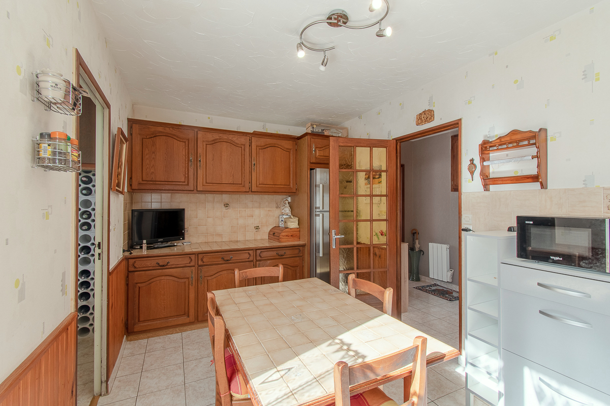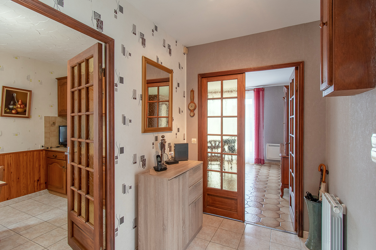 - une entrée donnant sur le salon/séjour, une cuisine séparée, un couloir desservant 3 chambres, une salle d'eau, un cellier et un WC séparé.