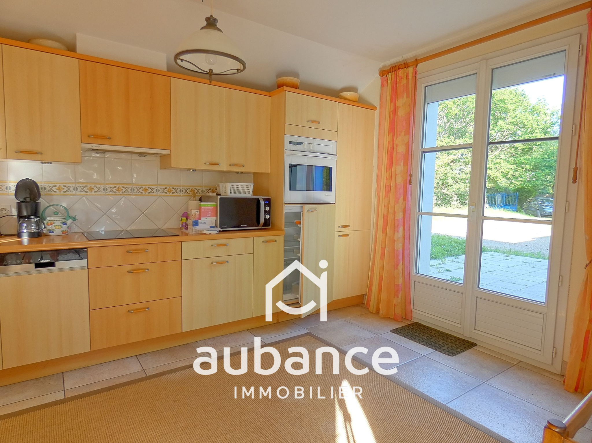 Elle est composée de la manière suivante : - Au rez-de-chaussée : entrée, pièce de vie de 39 m2 avec son poêle à bois et sa cuisine ouverte aménagée et équipée, chambre de plain-pied avec salle d'eau attenante, WC, buanderie et garage avec porte automatique - Au premier étage : une chambre en palier et une chambre avec salle d'eau et WC