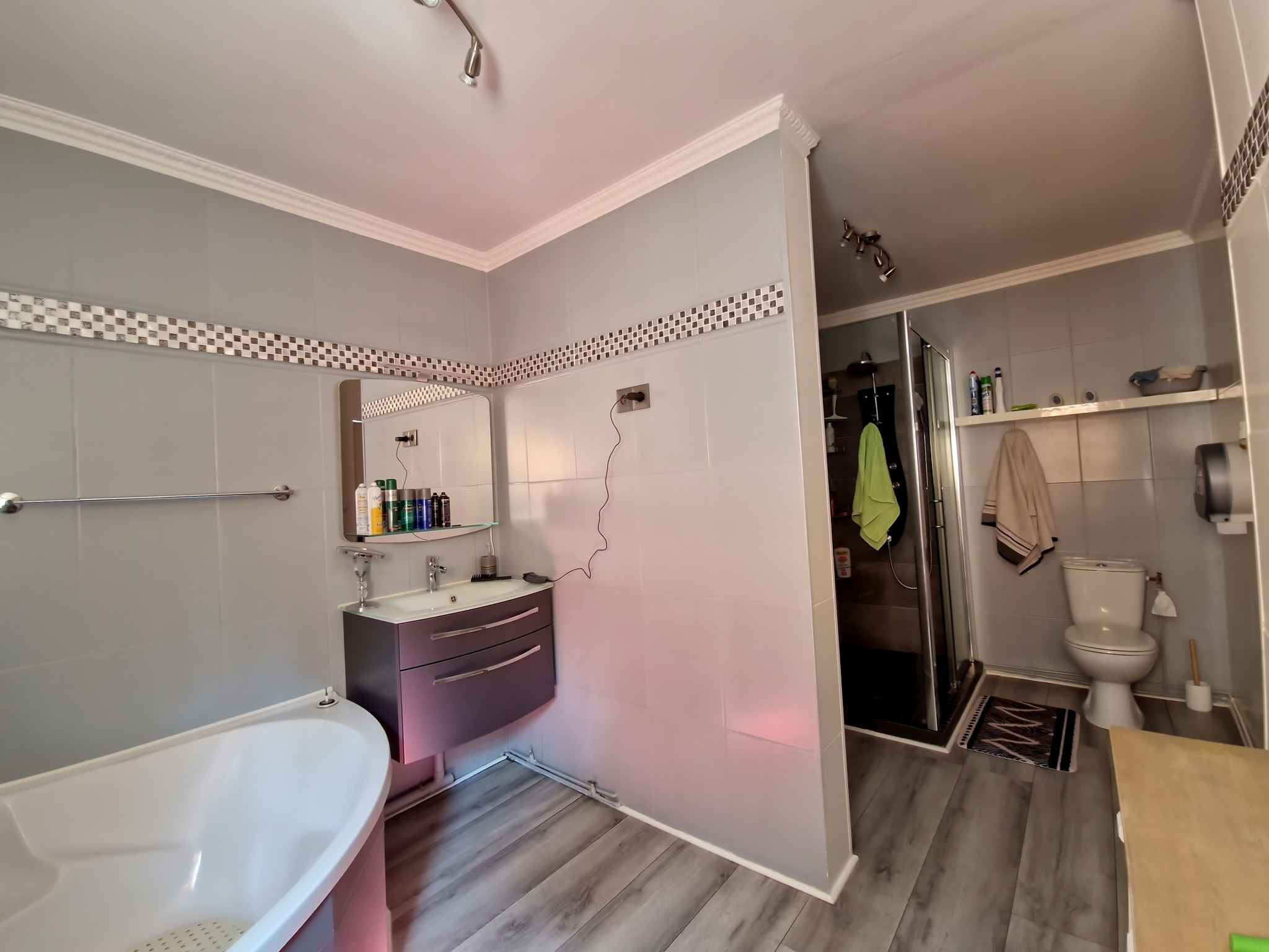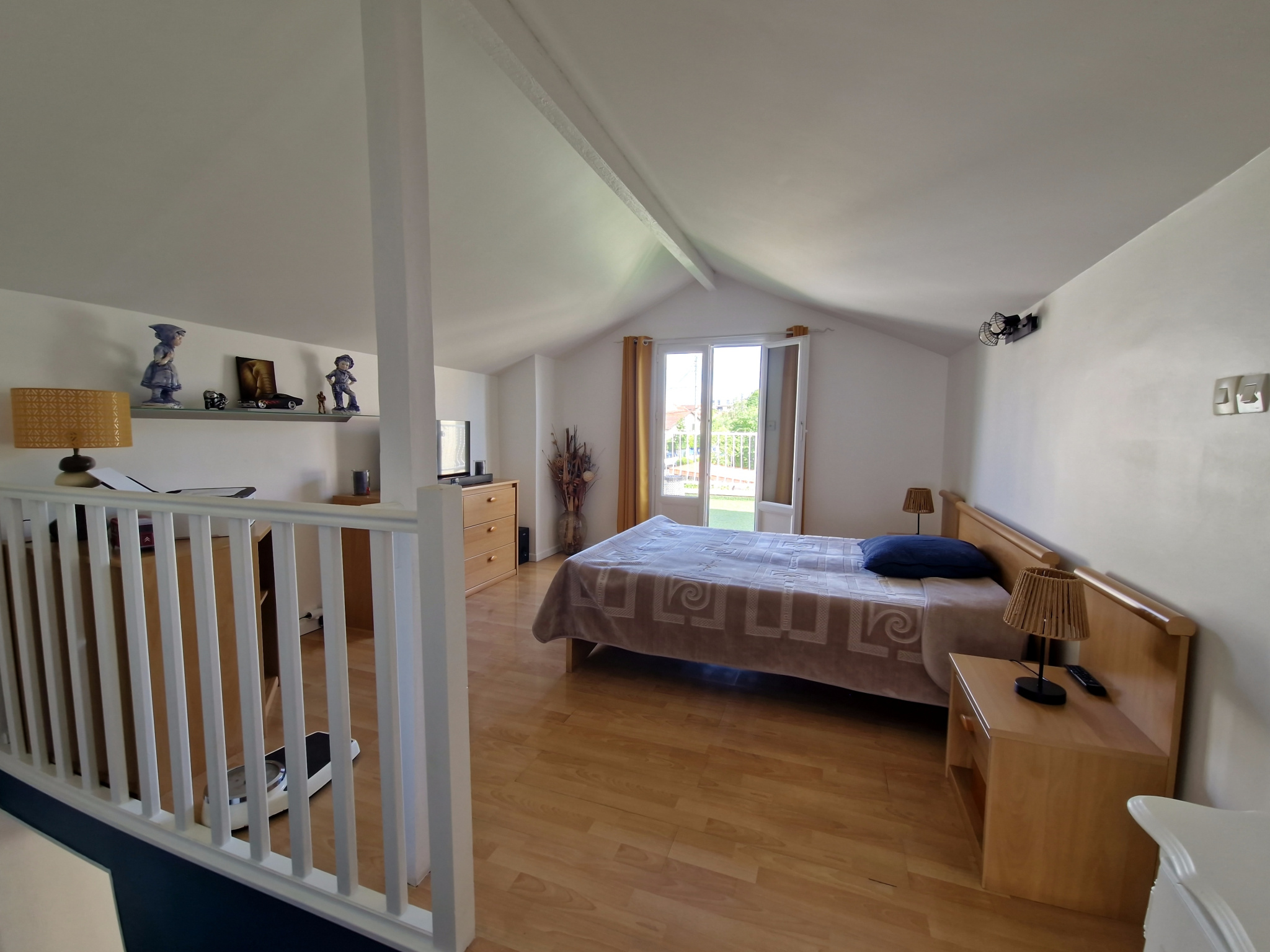 A l'étage une chambre avec une grande terrasse et une seconde chambre avec wc lavabo.