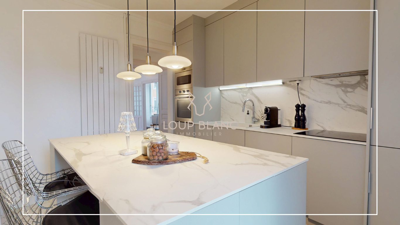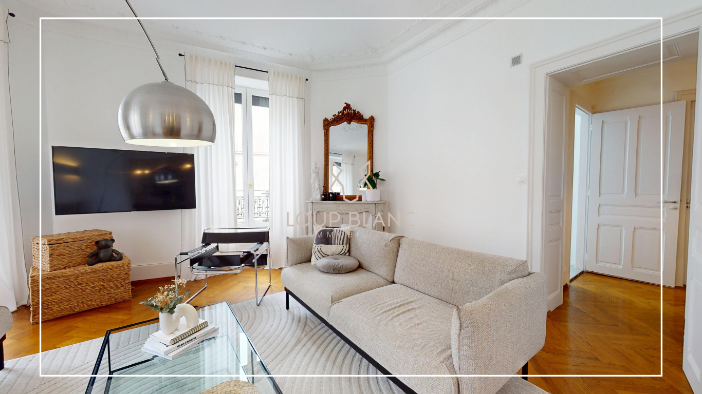 Ce bien d'exception séduit par son charme et ses volumes généreux. Il offre deux salons lumineux et une salle à manger communicante avec accès au balcon, parfaits pour recevoir. Vous y trouverez également deux grandes chambres, un magnifique dressing, ainsi qu'une cuisine indépendante entièrement équipée, ouvrant sur une agréable terrasse pouvant accueillir 4 à 6 personnes. L'appartement dispose enfin d'une salle de bains et d'une salle d'eau pour un confort optimal.