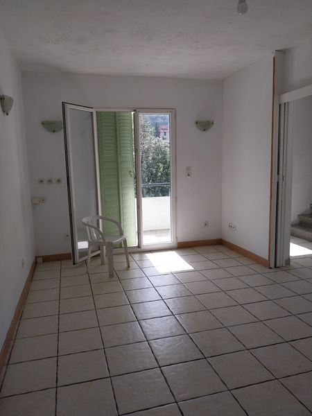 1 Étage : une cuisine semi-aménagée ouverte sur une grande salle à manger/salon et de chaque extrémité de la pièce un balcon donnant côté rue et de l'autre une pergola