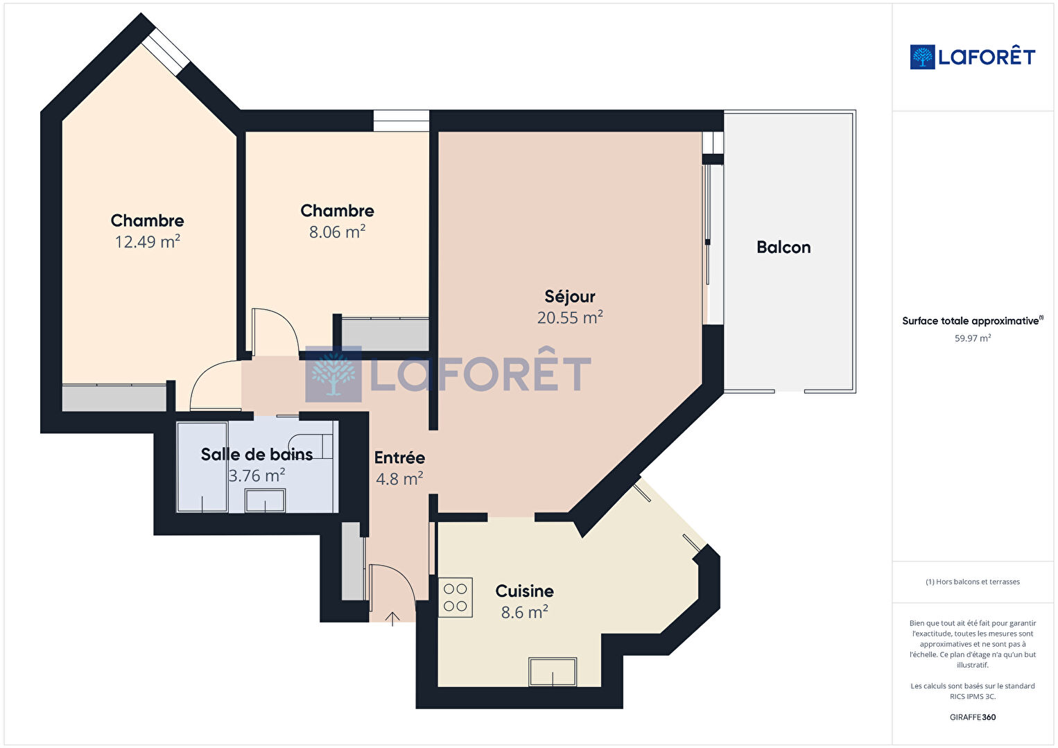 Au 5e étage d'une résidence avec ascenseur, découvrez ce F3 de 60 m², prêt à vous accueillir.