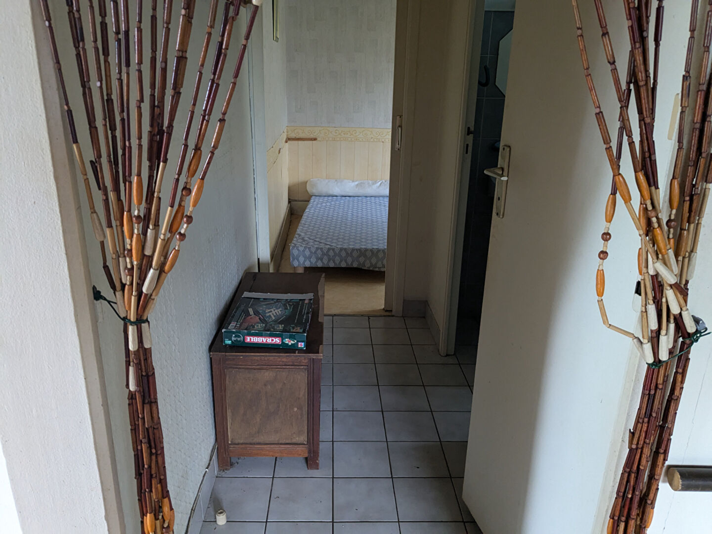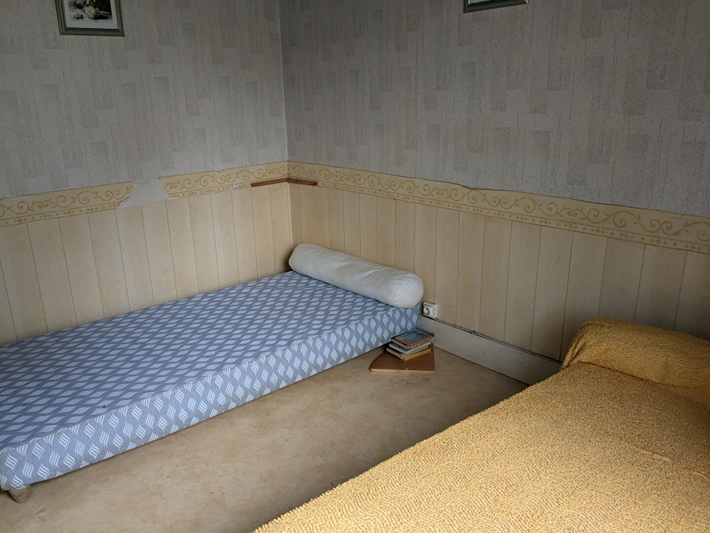 Elle se compose : d'une pièce de vie avec un espace cuisine simple, un couloir desservant deux chambres, une salle d'eau et un W.C. indépendant.