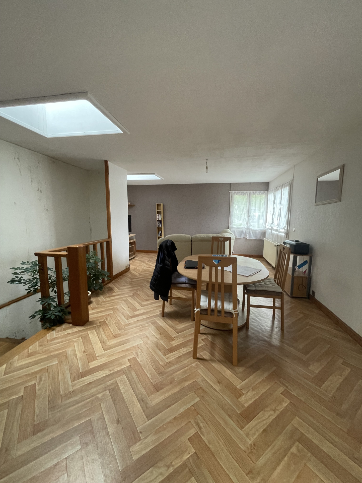 A l'étage : une pièce à vivre de 25m2 et une cuisine ouverte amenagee et équipée, une salle de bain, un wc séparé et 2 chambres.