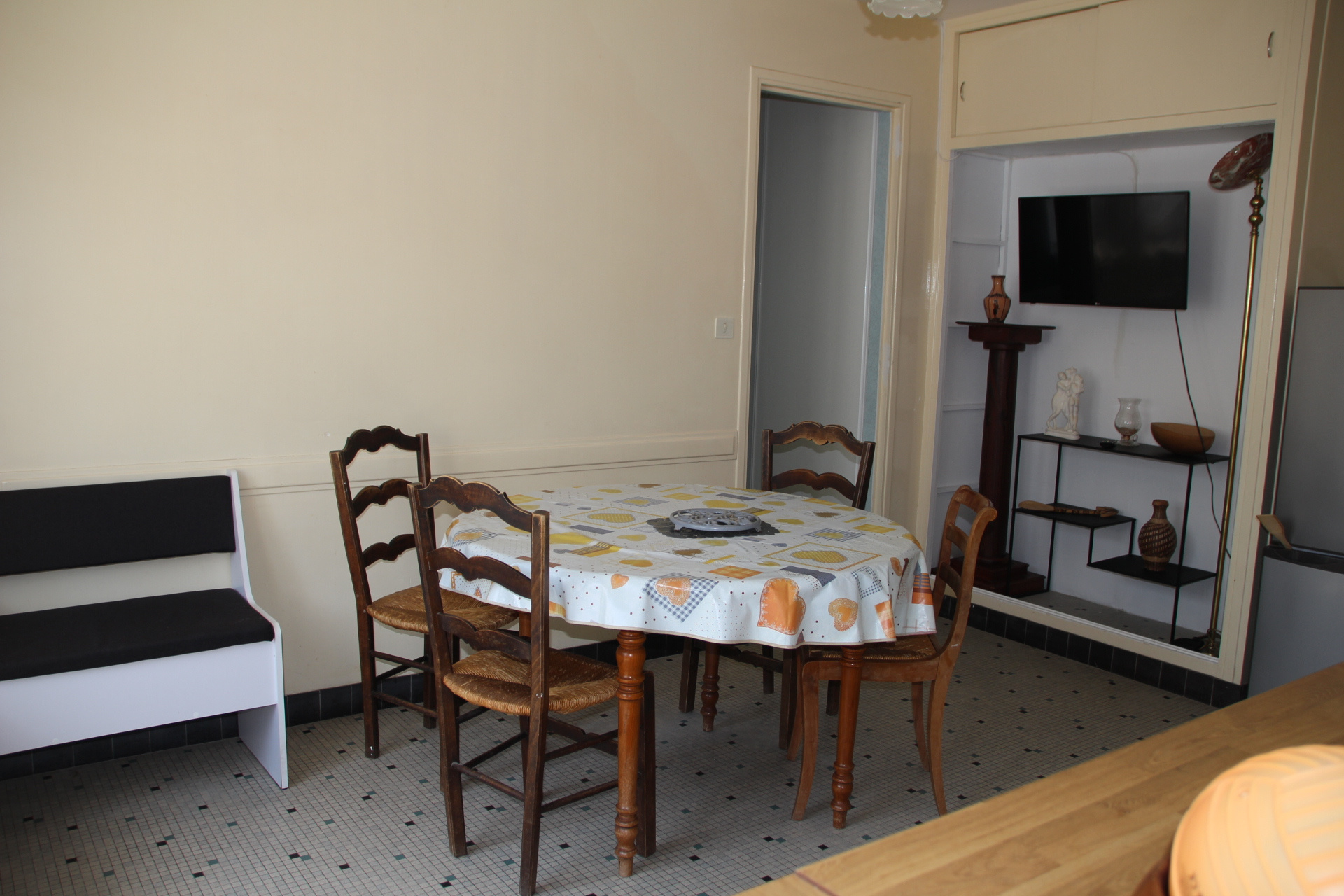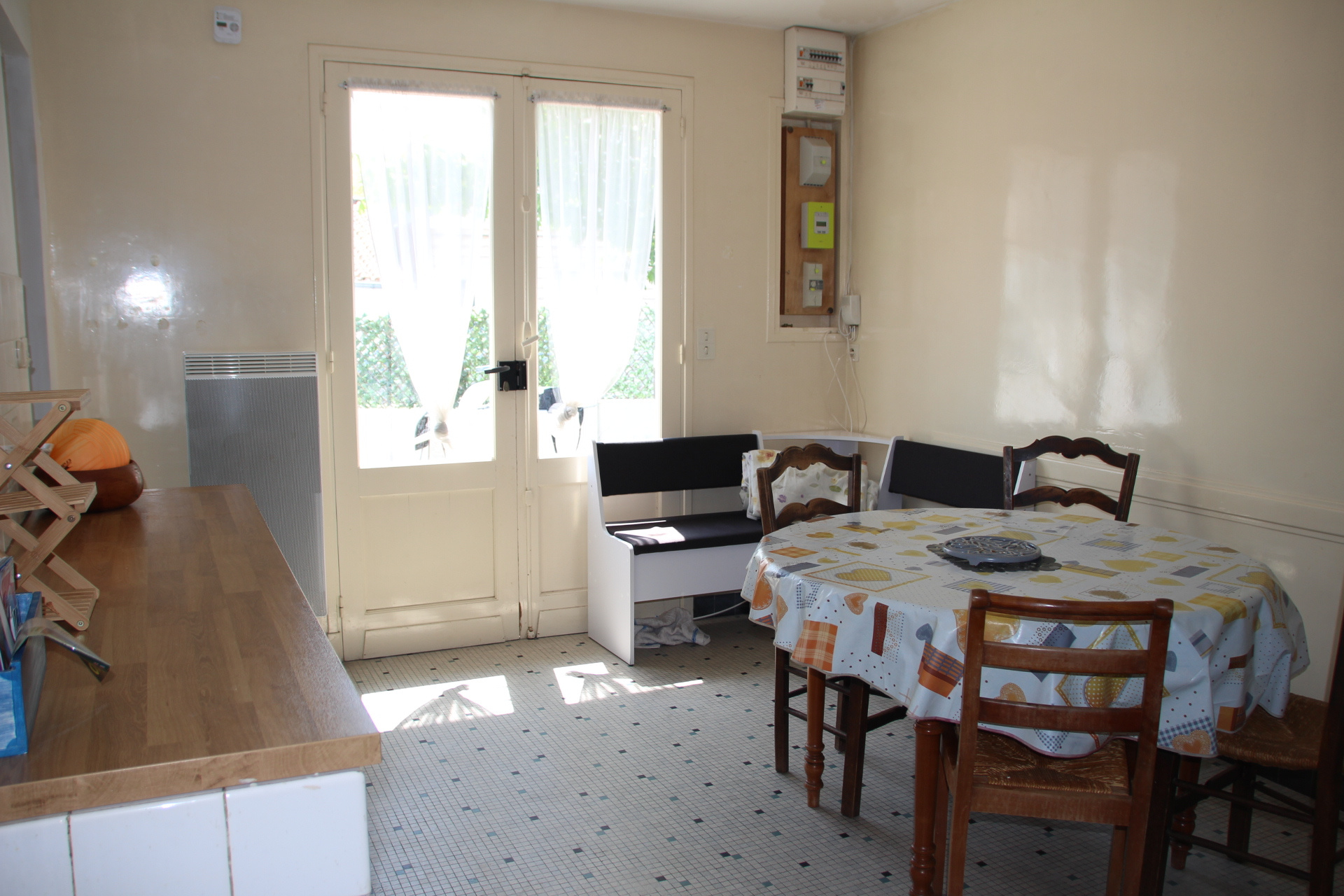 Sur un terrain de 181 m2, maison de plain-pied en partie mitoyenne, construction de 1964, d'une surface habitable de 48.43 m2 environ comprenant : entrée sur séjour, cuisine, 2 chambres dont une avec placard, salle d'eau avec W.C., dégagement avec placard.