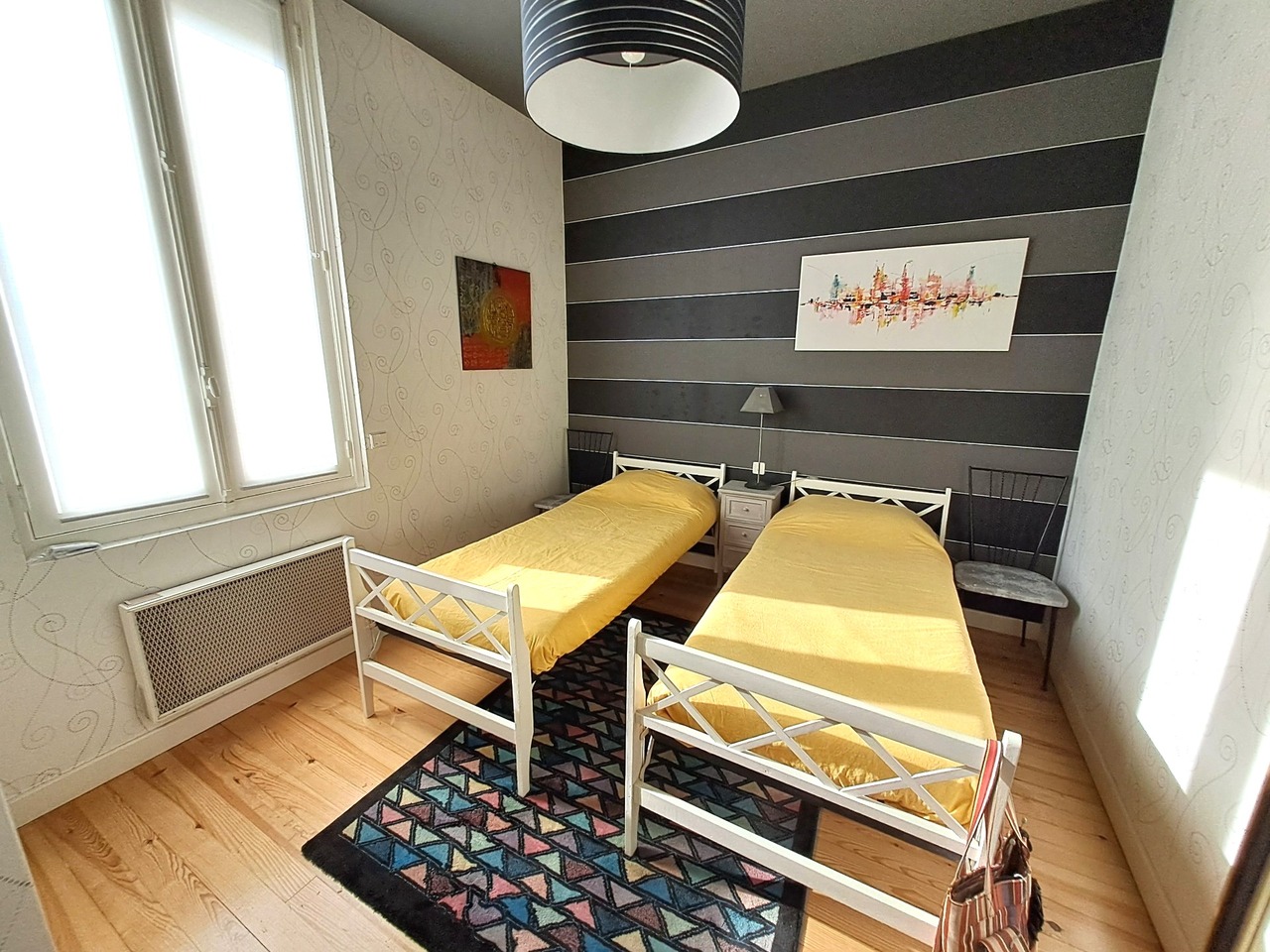 Réf 5035 : EXCLUSIVITE PROCHE CENTRE VILLE MAISON DE CHARME DES ANNEES 30 AVEC JARDIN 800M² . Cette maison de 114 m² hab comprend : au rez de chaussée : hall d'entrée 9 M², cuisine15 M² ouvrant sur une terrasse de 25 M² ( sans vis à vis) donnant accès au jardin, salon 22 M². Ces 2 pièces communiquent par une double porte vitrée. WC. Au 1er étage : dégagement, 4 chambres de 10 à 16 M² dont 3 avec placards, salle de bains 5 M², WC, dressing (poss SDB) Un escalier donne accès aux combles aménageables. En annexe : Garage 42 M², caves 42 M² . Le jardin situé à l'arrière de la maison est protégé du bruit de la ville. Maison très bien entretenue , entre autre : toiture et isolation combles 2024. A VISITER EXCLUSIVEMENT AVEC L 'AGENCE VIC IMMOBILIER : 04.75.05.06.16