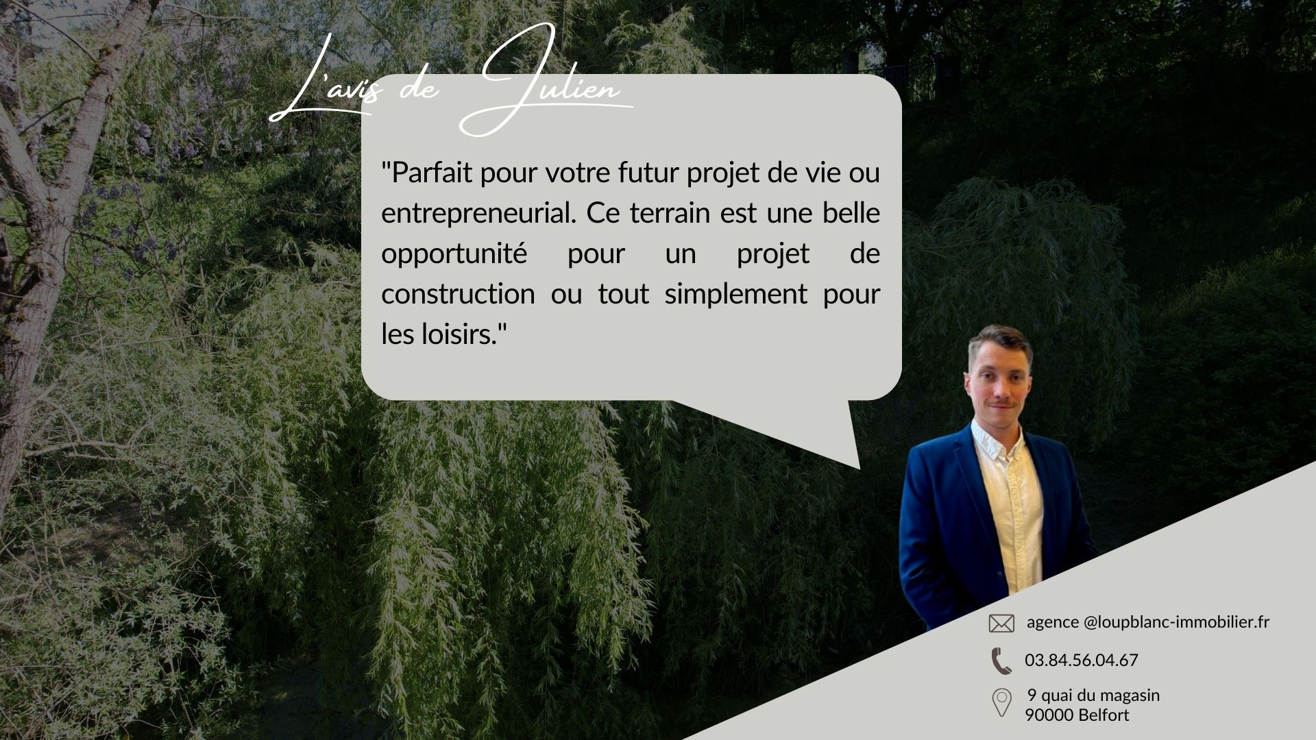 L'avis de Julien : 'Parfait pour votre futur projet de vie ou entrepreneurial. Ce terrain est une belle opportunité pour un projet de construction.'