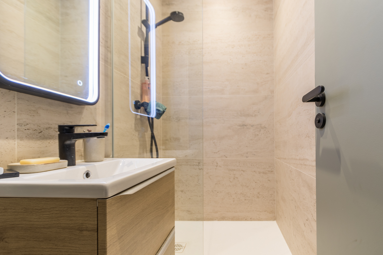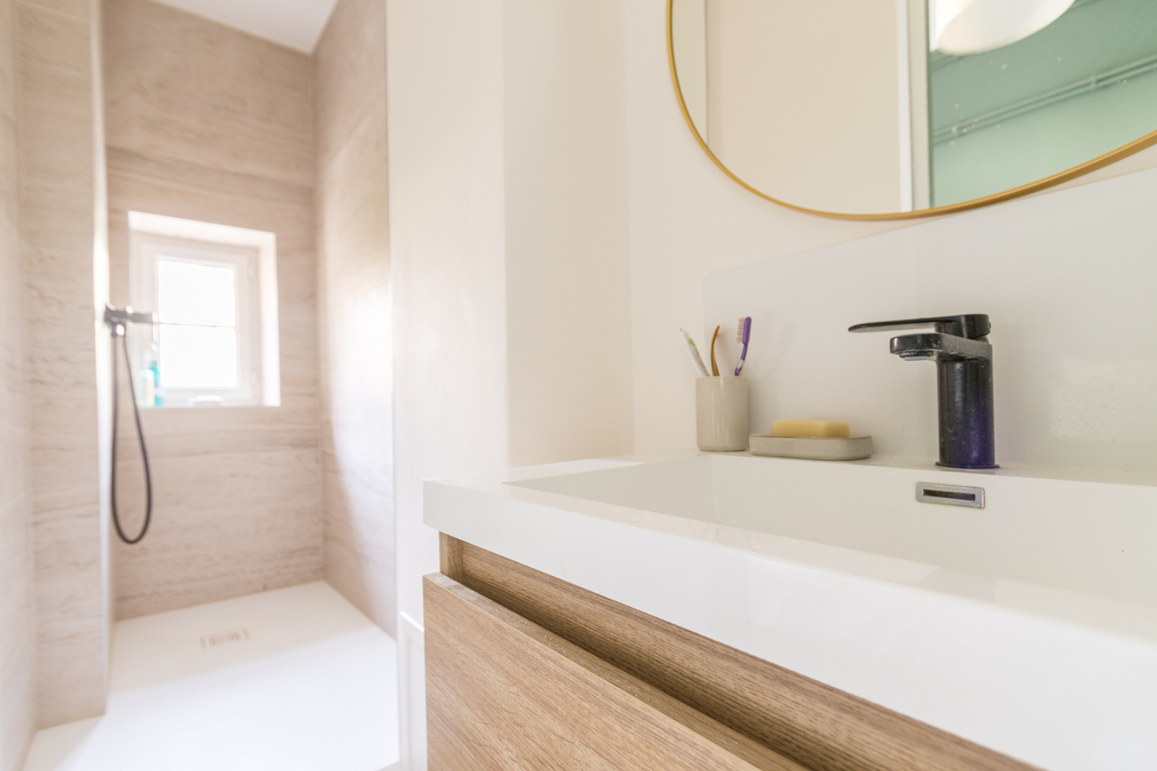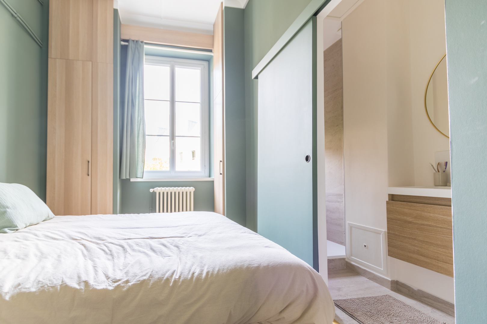 Dans très bel immeuble ancien, appartement entièrement rénové avec grande pièce à vivre, deux chambres, deux salles d'eau, dépendances et jardin commun. Beaucoup de cachet.