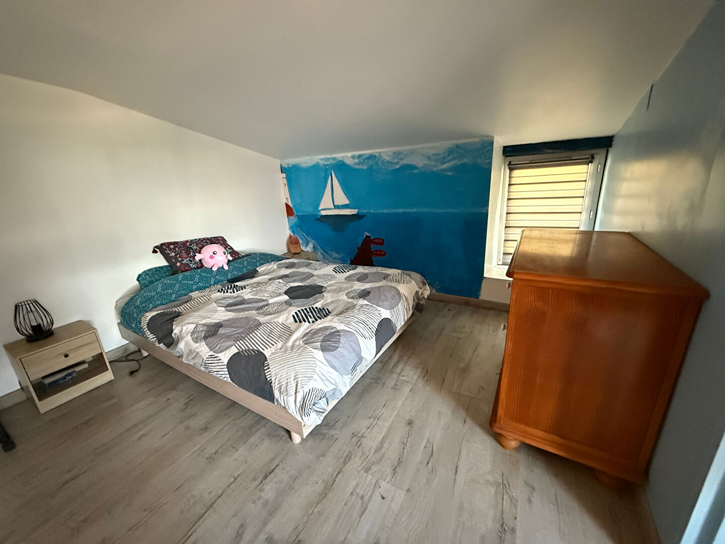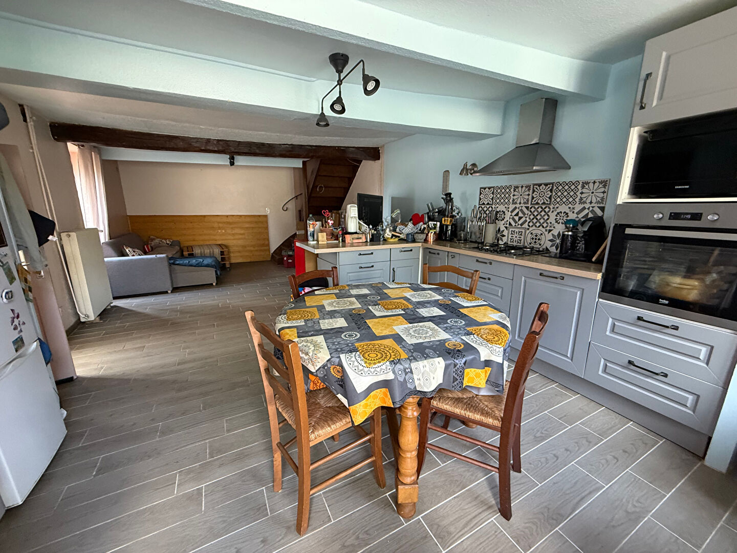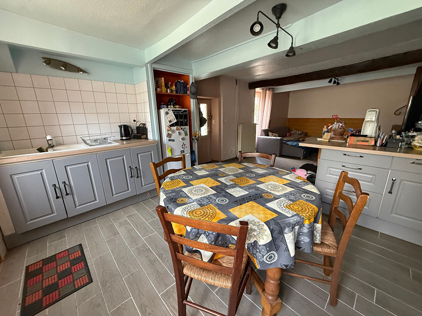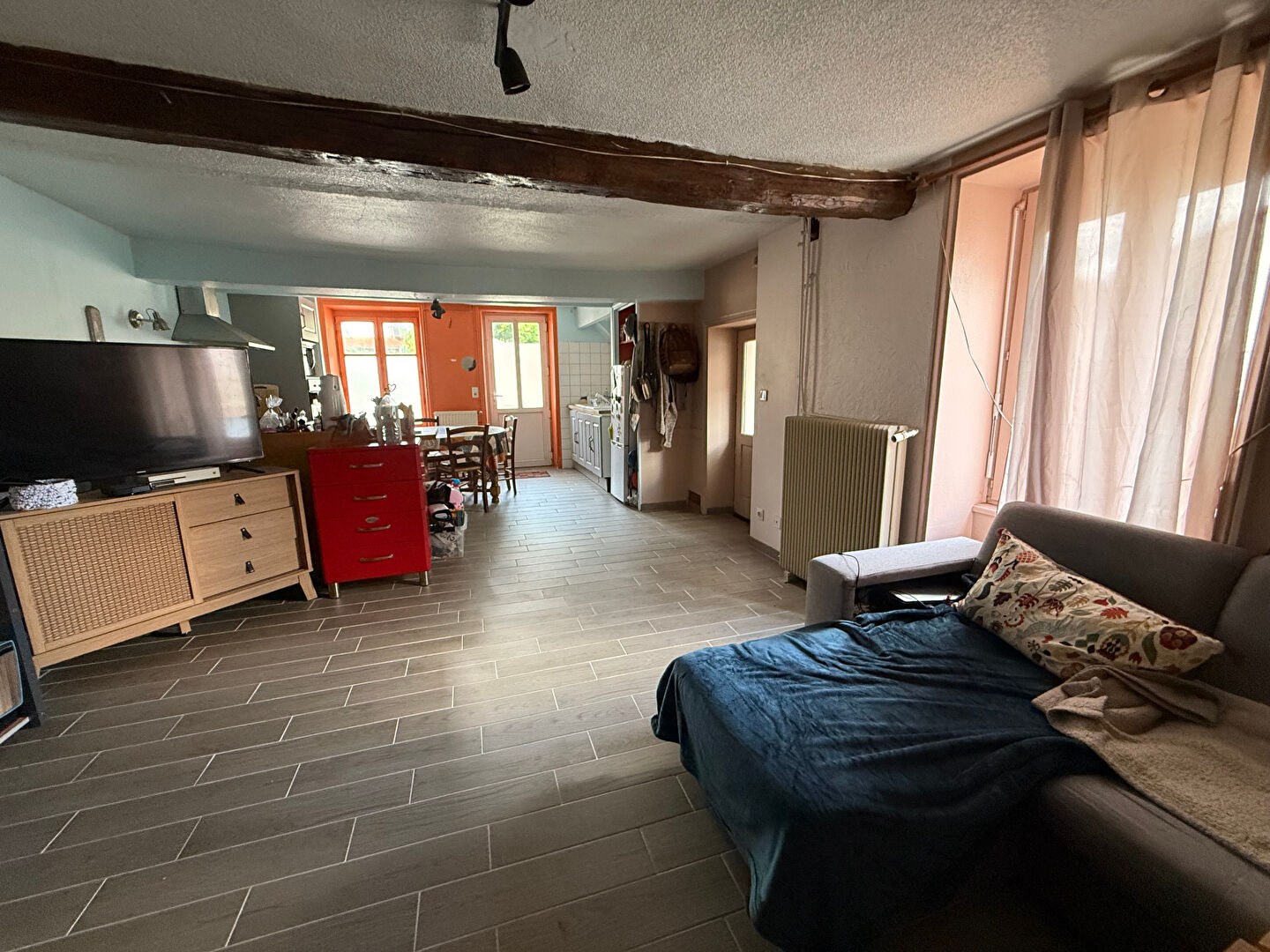 Maison de village d'environ 65 m² habitables (carrez) comprenant au rez-de-chaussée cuisine aménagée ouverte sur salon-séjour, petite véranda, salle d'eau à réhabiliter totalement, W.C. avec lave mains, à l'étage 2 chambres, wc sanibroyeur avec lave mains. Courette et cave. Chauffage central gaz de ville, tout à l'égout. Pas de garage, stationnement facile à proximité.