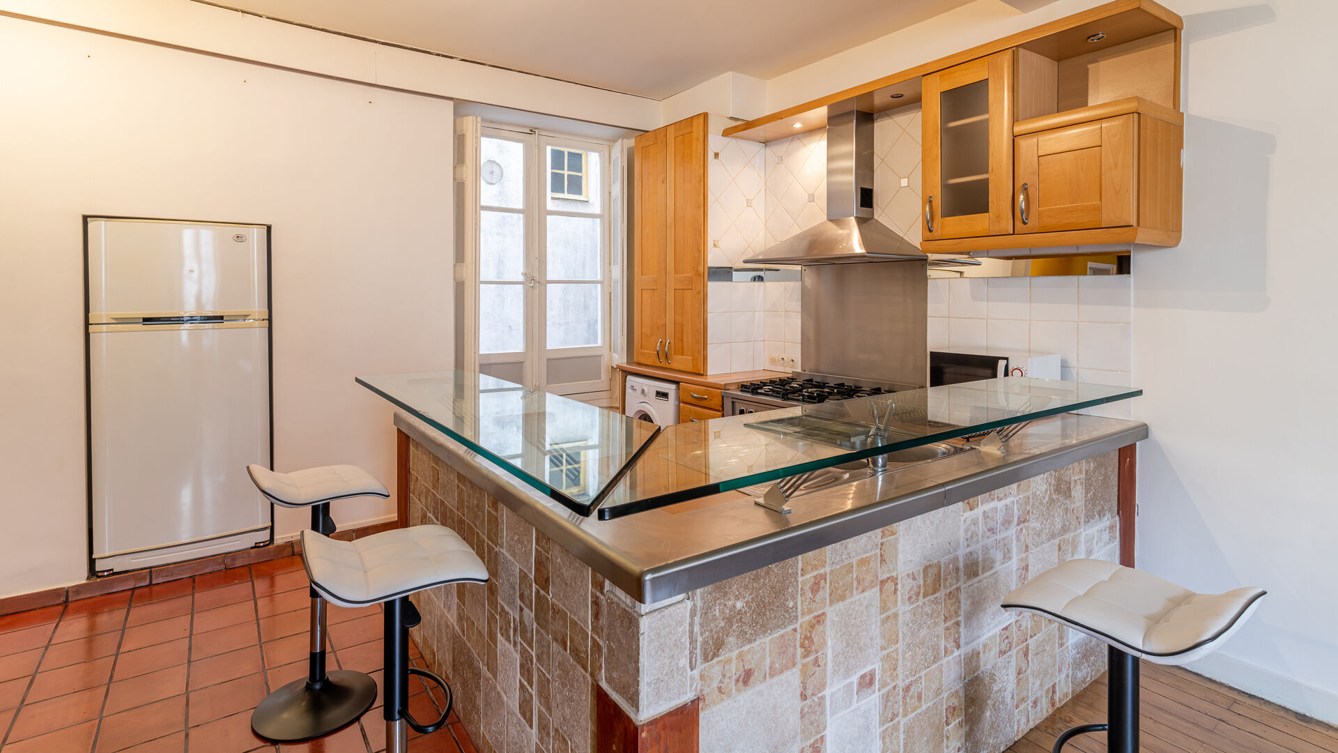 Niché au premier étage, il offre une vaste pièce de réception de près de 41m² avec cheminée décorative et cuisine ouverte aménagée et équipée, une chambre, possible 2 et une salle d'eau avec WC.