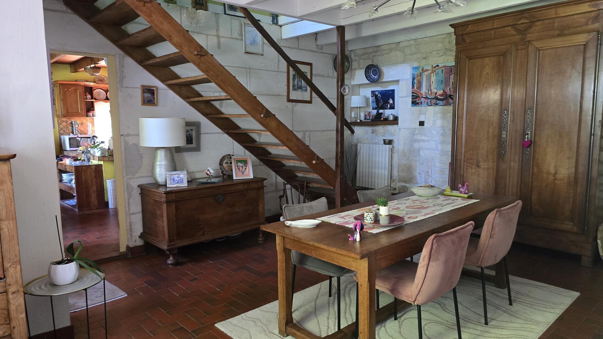 Authentique Maison Charentaise comprenant : une entrée, une cuisine de 30 m² avec son coin repas, un séjour avec sa cheminée, un salon avec une pièce attenante de 18 m² à rénover pouvant faire une chambre avec salle d'eau et WC.
