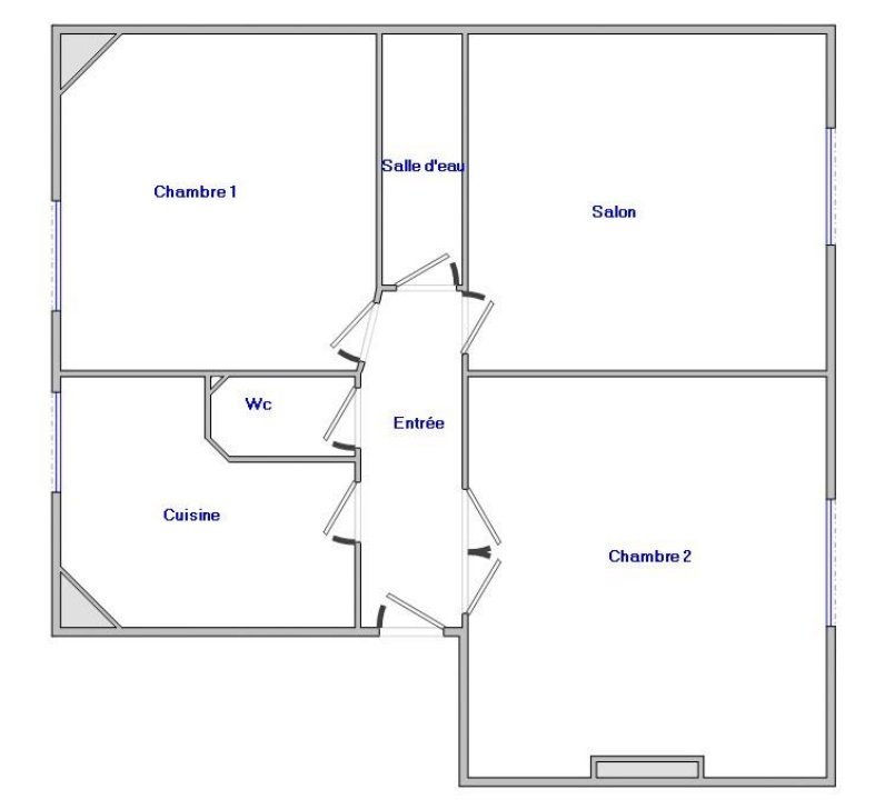 Il comprend : une entrée spacieuse en étoile, une cuisine, un séjour, deux chambres, une salle d'eau, des WC séparés.