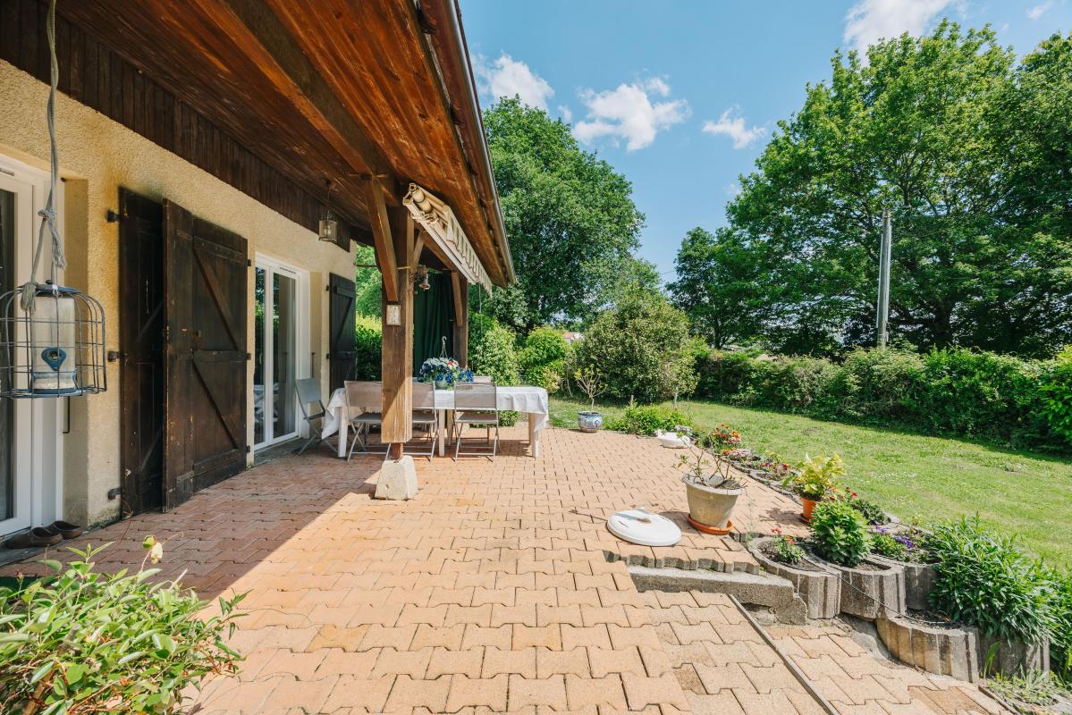 Sur un terrain arboré et sans vis à vis d'environ 2000 m², dans un environnement calme, maison de 111 m² .