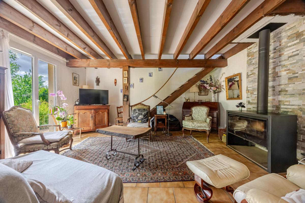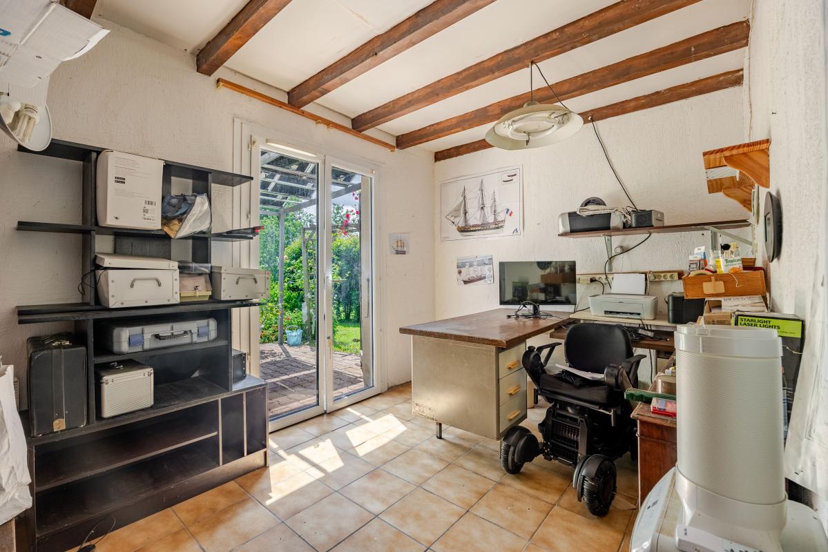 Au rez de chaussée, belle pièce de vie avec insert bois, cuisine indépendante, une chambre, bureau, salle d'eau , et wc séparé.