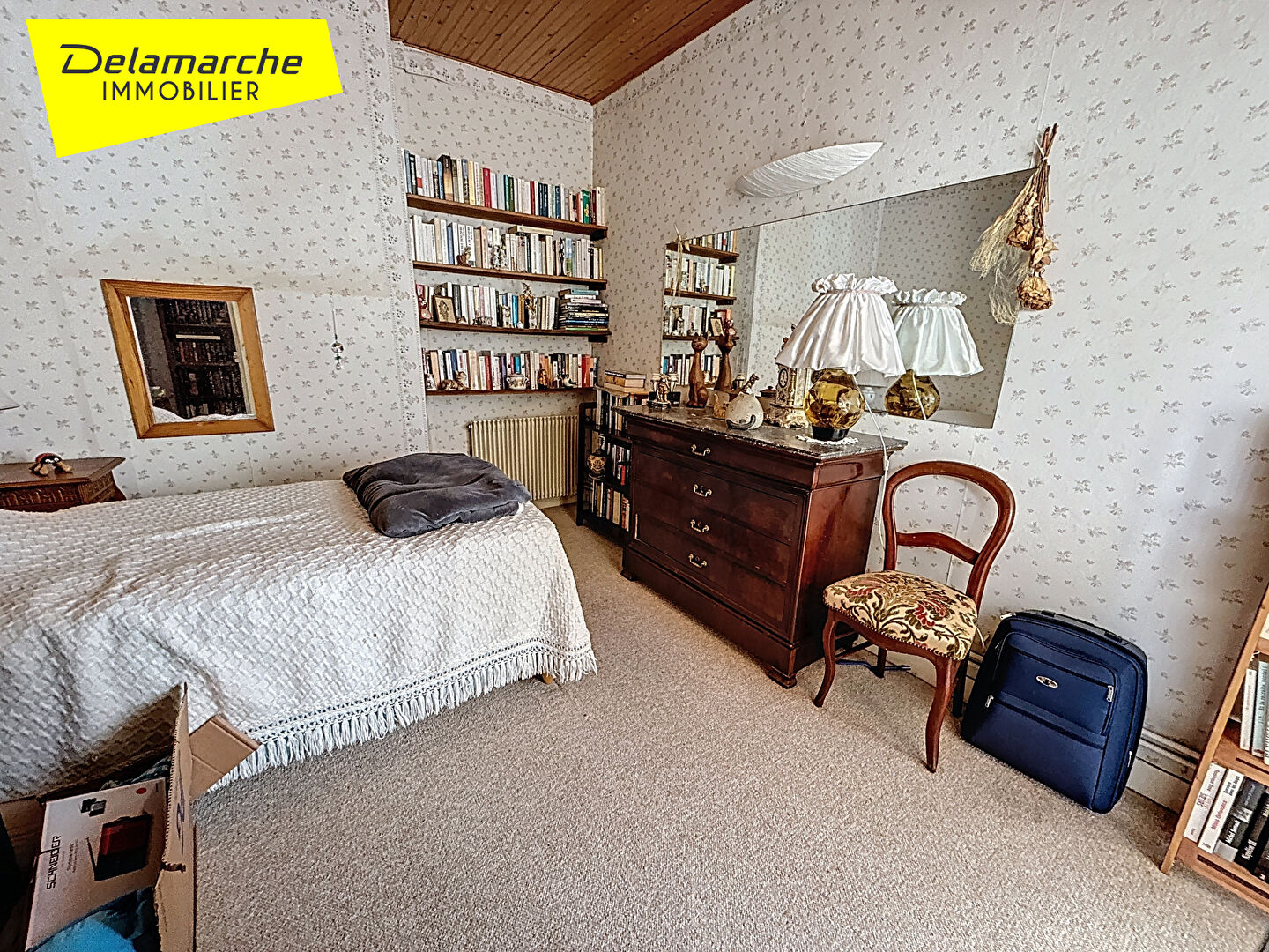À l'étage, un palier desservant 4 chambres, dont une accessible via un ascenseur (à réhabiliter), un balcon offrant un agréable point de vue.