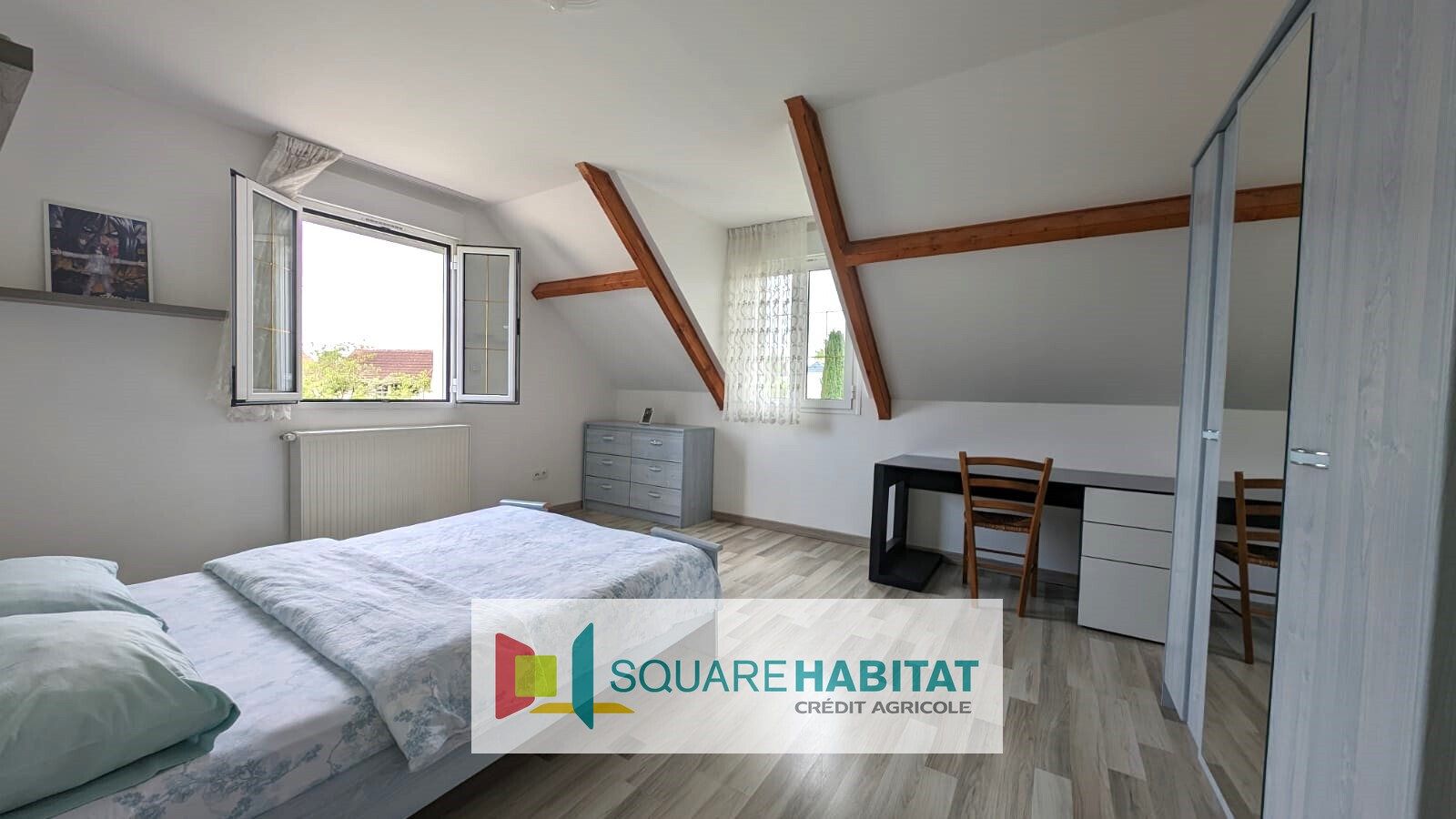L'étage propose 4 grandes chambres, une salle de bains et un wc ;