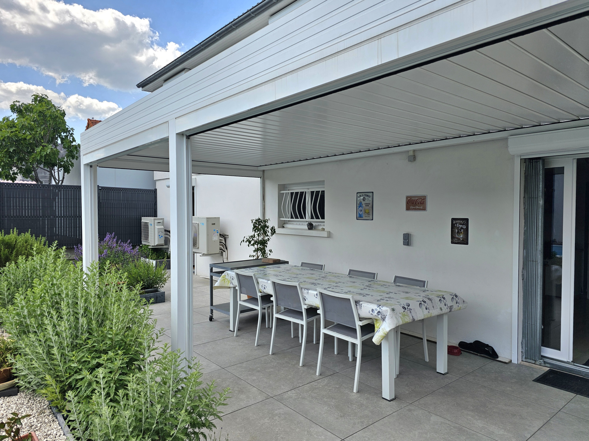 À l'extérieur, vous pourrez profiter d'une belle terrasse couverte, d'un abris de jardin, d'un pool house avec grenier et d'une autre petite terrasse.