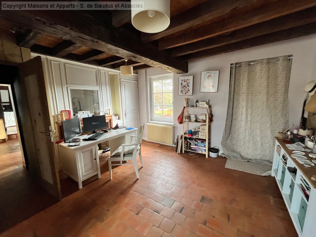 Tomettes, poutres, poële à bois, tout le charme de l'ancien rénové avec goût .