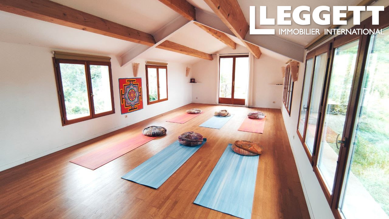 Avec ses sept chambres et ses quatre salles d'eau, cette propriété offre de nombreuses possibilités d'hébergement. Le spacieux studio de yoga/salle de réception (37m²) et la terrasse de yoga font de cette propriété une magnifique retraite de bien-être. Une cuisine/salle à manger moderne équipée s'ouvre sur une terrasse avec vue sur la vallée, et un salon à double exposition mène à une autre terrasse. Une pièce supplémentaire peut servir de bureau ou de logement d'appoint.