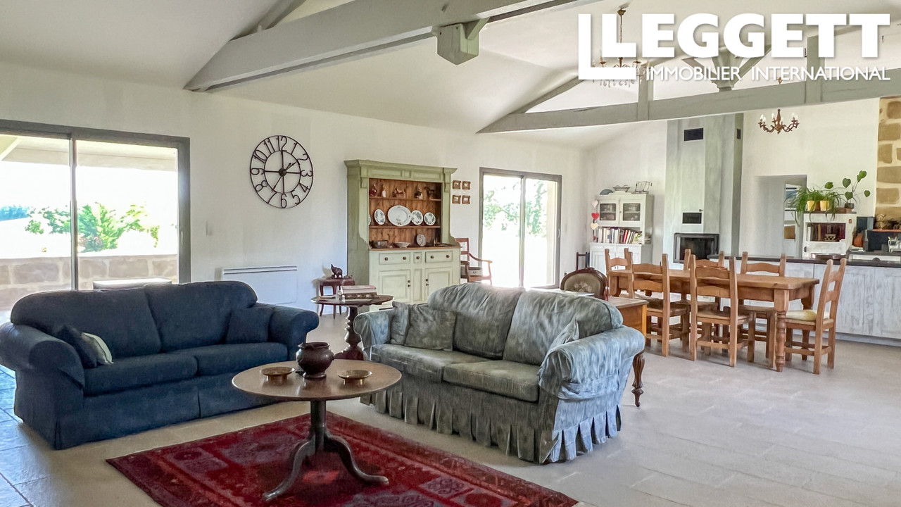A36889GJP47 - Récemment rénovée et bénéficiant de superbes vues surélevées, cette maison de 4 chambres est magnifiquement entretenue et comprend un impressionnant salon avec plafond cathédrale, poutres apparentes, cheminée et poêle à bois. La pièce est lumineuse et de grandes portes-fenêtres s'ouvrent sur les jardins et la terrasse. La maison bénéficie également d'une grande terrasse couverte à l'avant de la propriété, d'un garage et d'une petite dépendance qui pourrait être rénovée pour créer un studio. Une maison de famille ou de vacances confortable et élégante 5 minutes de la bastide la plus proche avec tous les commerces, 40 minutes de l'aéroport de Bergerac et 15 minutes d'Eymet, d'Allemans sur Dropt et de Seyches.. Beaucoup d'espace pour une piscine si désiré.