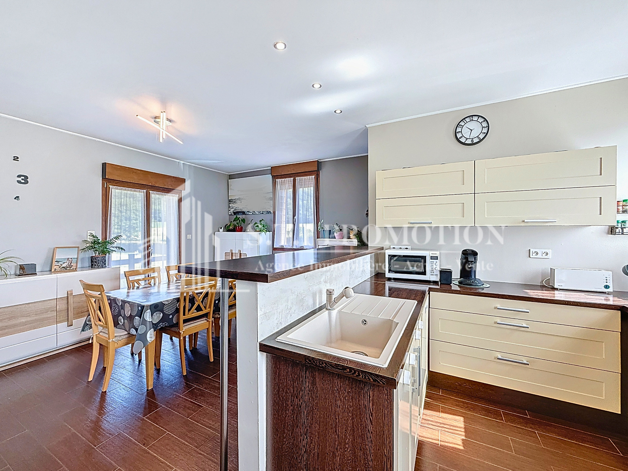 Dès l'entrée, vous serez séduits par la luminosité naturelle qui baigne les pièces de vie, notamment grâce à un salon-séjour spacieux de 36,5 m2 avec cuisine ouverte, créant une atmosphère chaleureuse et conviviale, parfaite pour recevoir vos proches ou simplement profiter de moments en famille.