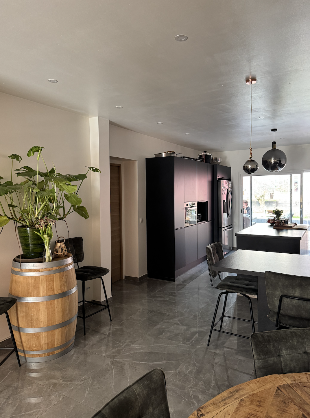 Au rez-de-Chaussée : un salon, une salle à manger avec cuisine américaine équipée et aménagée sur une surface de 63m2, encadré par deux grandes baies vitrées, l'une donnant accès sur la grande et paisible terrasse avec pergola à l'arrière de la maison avec son jardin de 120m2 et sa petite dépendance, l'autre donnant accès à la terrasse de 12m2, deux chambres dont une suite parentale avec sa belle salle d'eau et un WC indépendant.