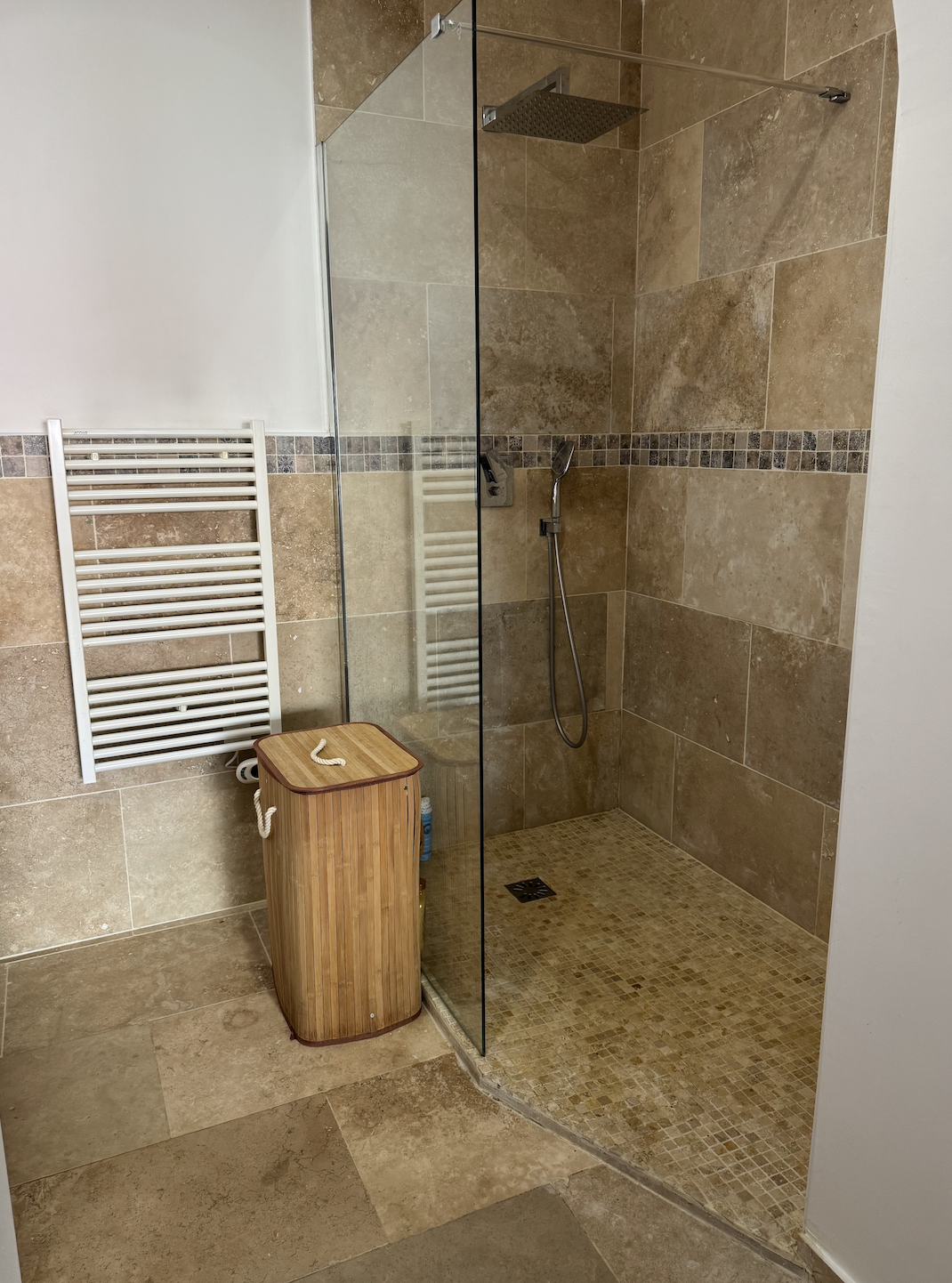 Au deuxième étage : Une chambre et une salle d'eau avec WC avec rangement sur le palier.