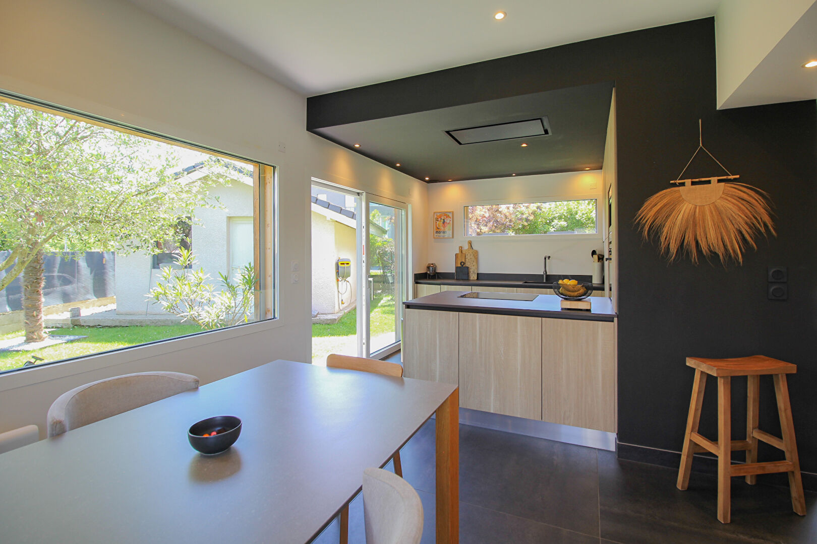 Une extension réalisée en 2020 accueille une magnifique cuisine semi-ouverte, moderne et lumineuse