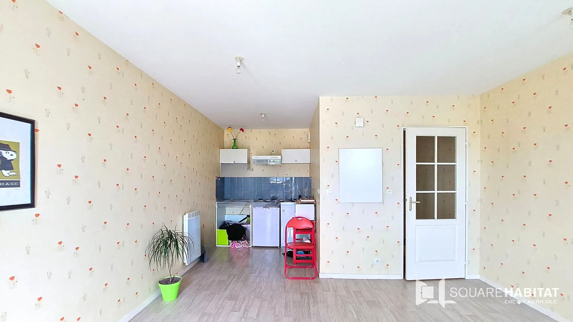 D'une entrée avec WC indépendant, une cuisine ouverte sur la pièce de vie, d'une salle d'eau et d'une chambre avec grand placard.