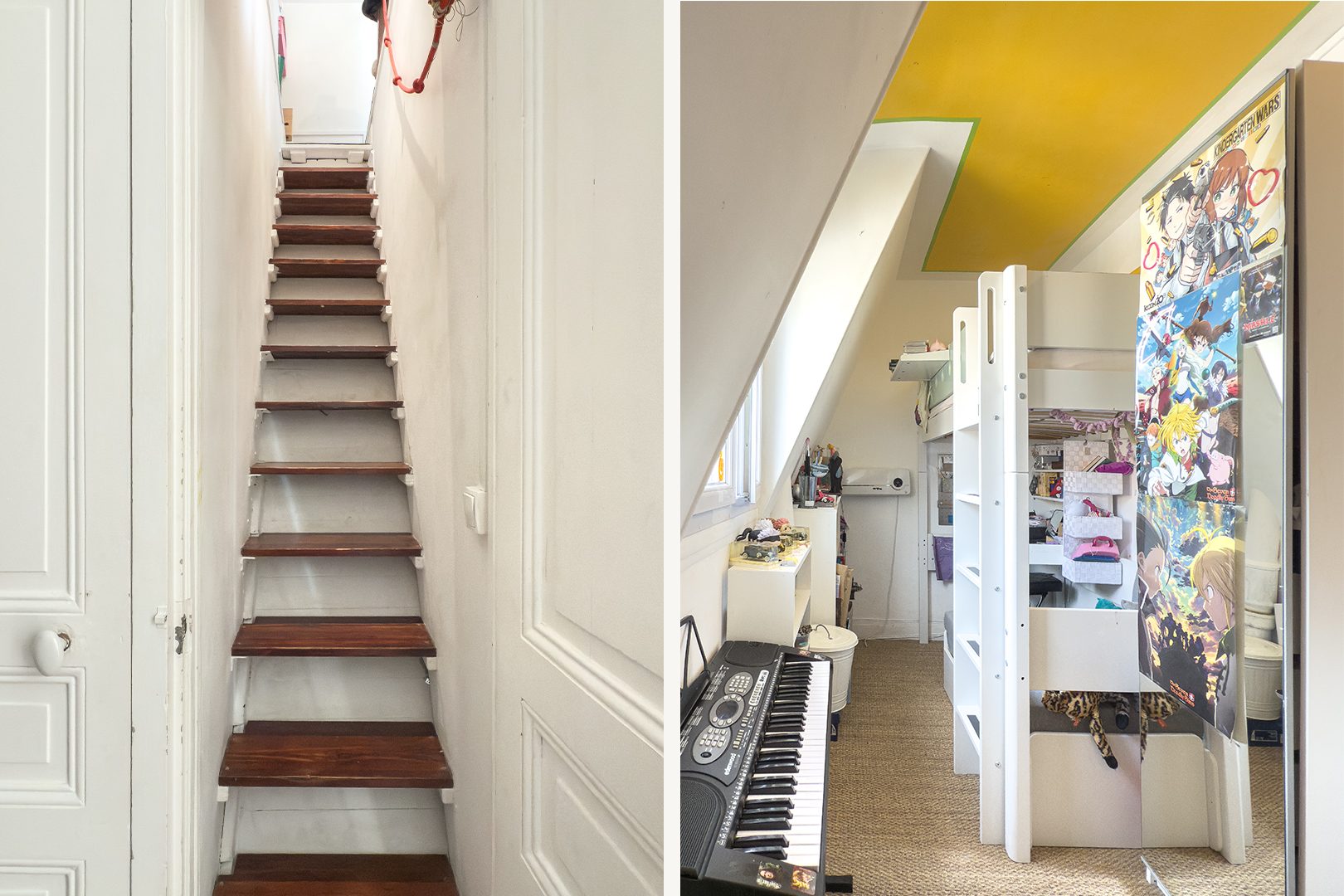 Vendu avec une chambre de service juste au dessus de l'appartement (escalier intérieur).