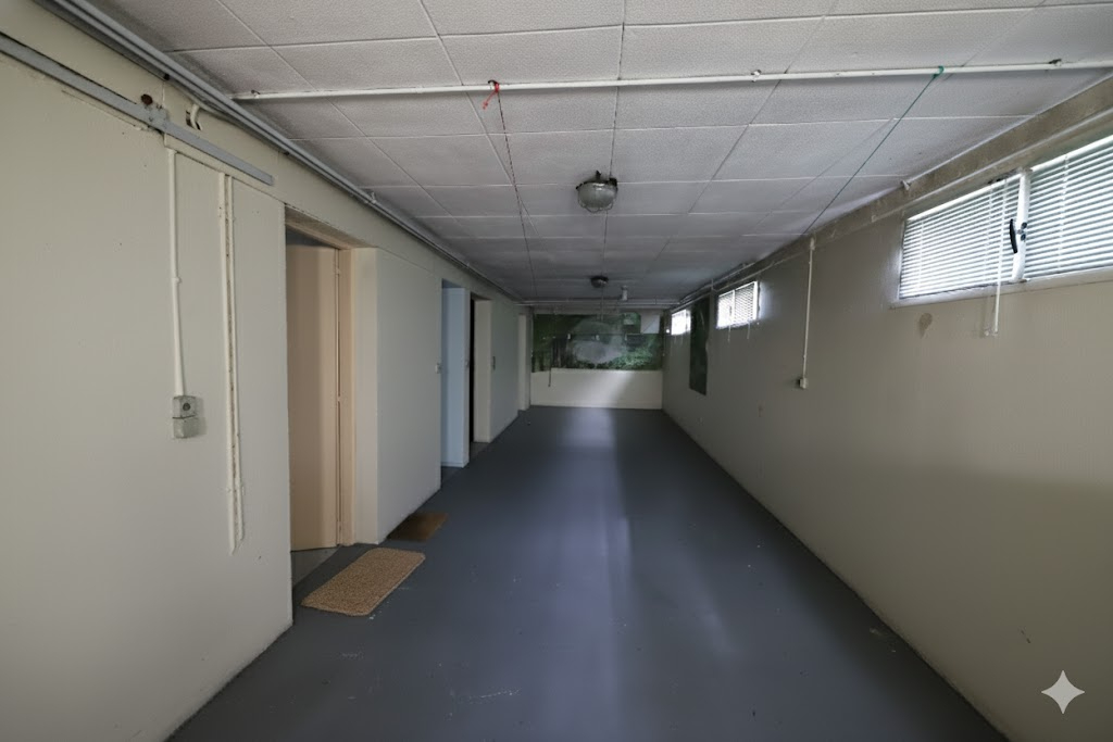 Au sous-sol garage, chaufferie, cellier, cave, cuisine d'été.