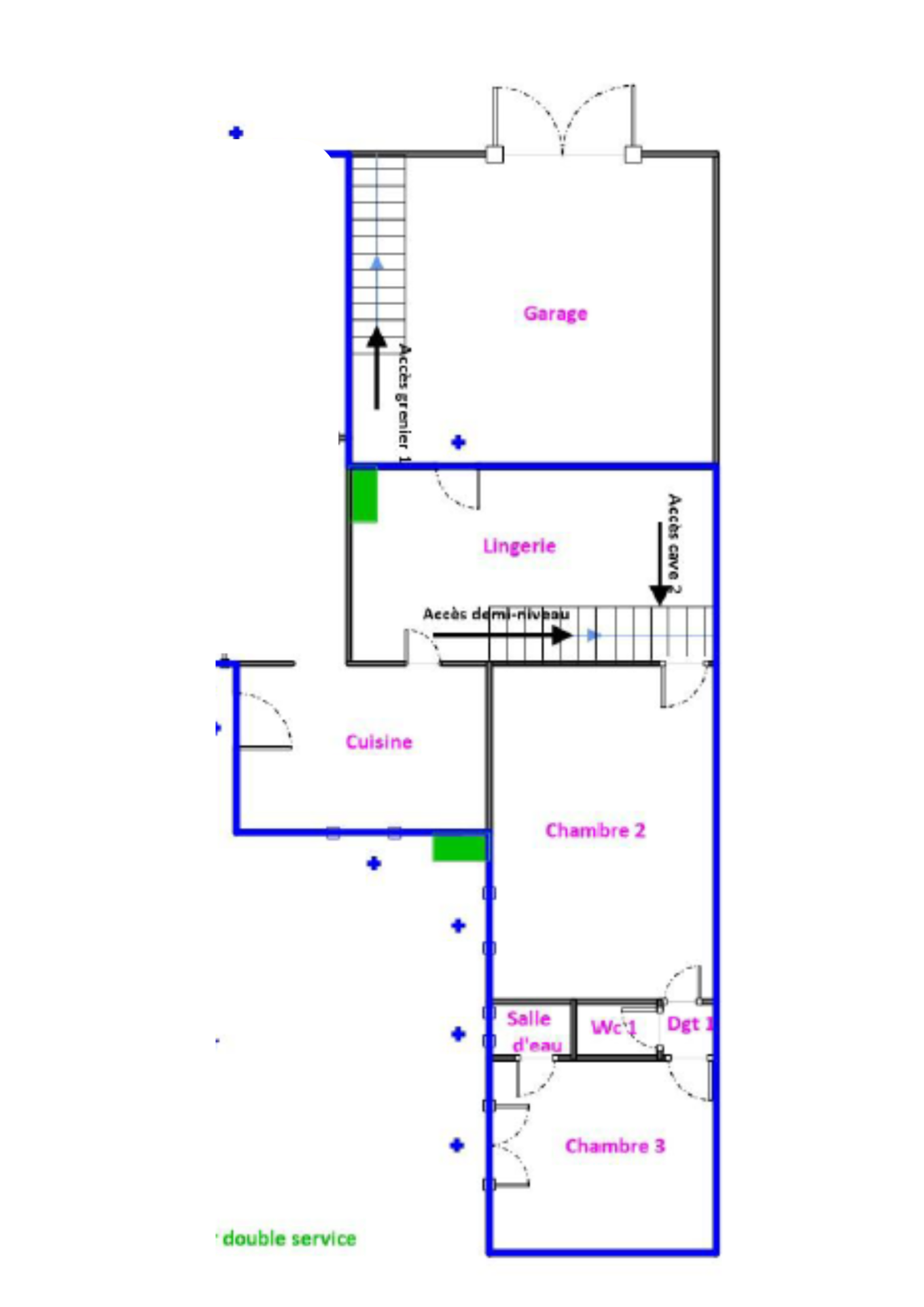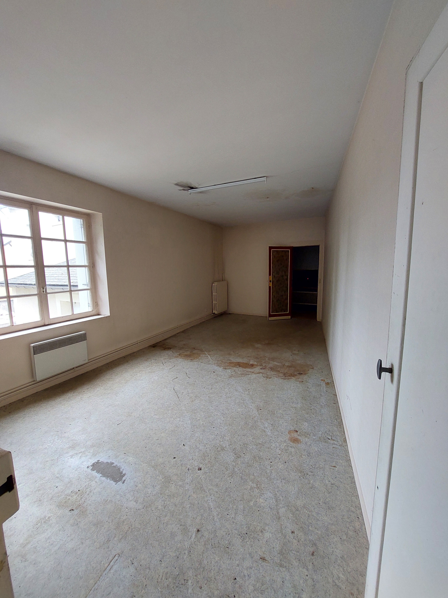 Bien à rénover entièrement composé comme suit : Entrée par un garage avec un plancher au dessus accessible par un escalier, 2 pièces, cave, 2 chambres en enfilade à l'étage avec WC séparé et SDE.