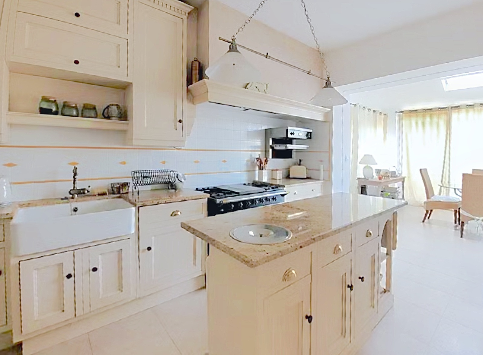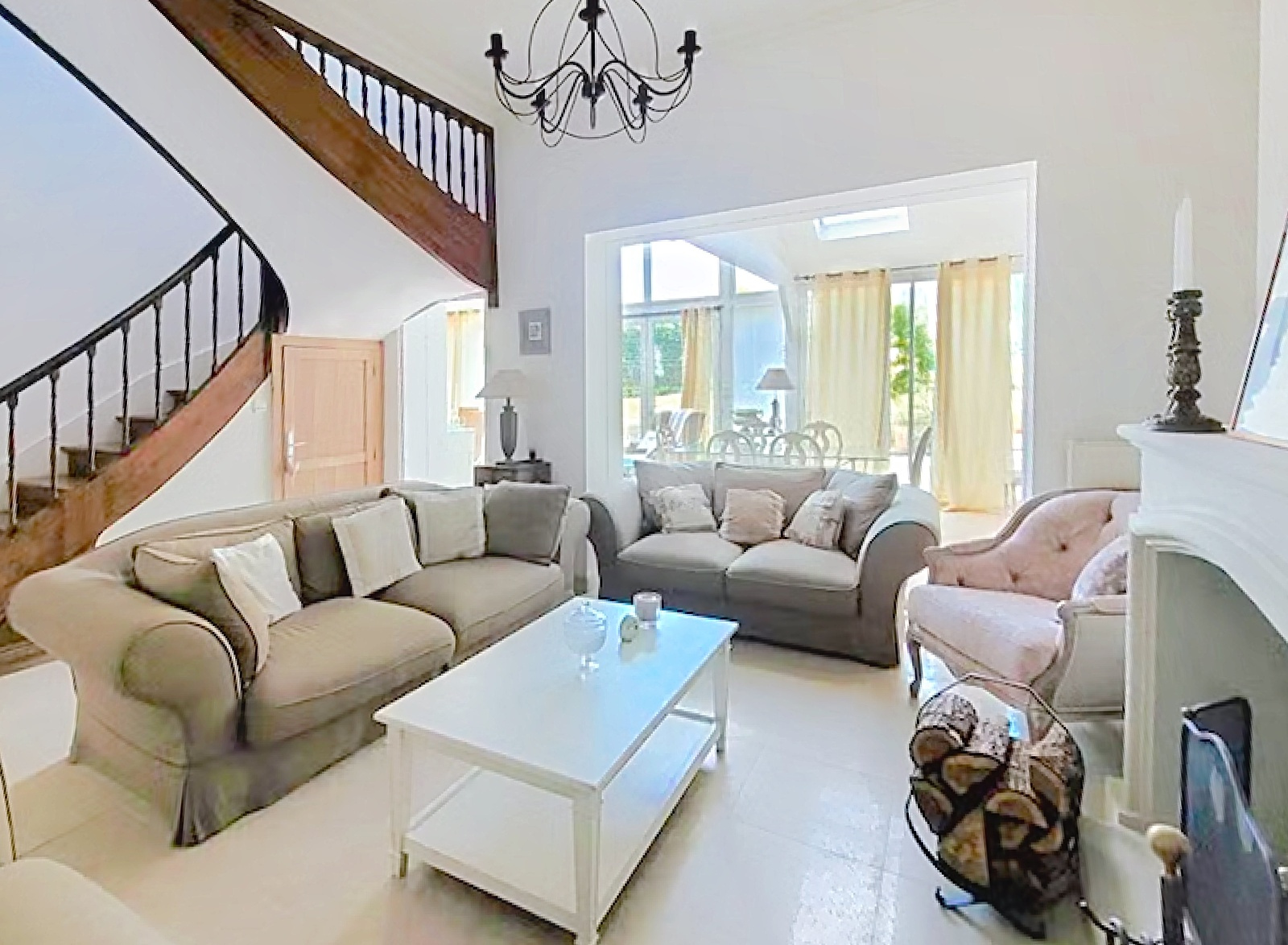 La pièce principale donnant sur la terrasse et le jardin bénéficie d'une luminosité exceptionnelle grace à son extension en toit 'cathédrale' et ses baies vitrées.