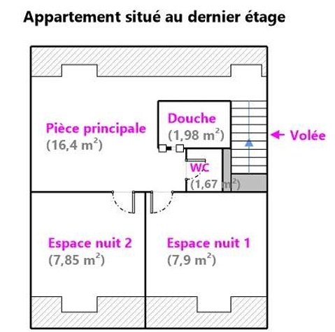 Situé à proximité immédiate du centre-ville et de l'ESA, dans une petite copropriété bien entretenue, cet appartement rénové avec soin se trouve au dernier étage.