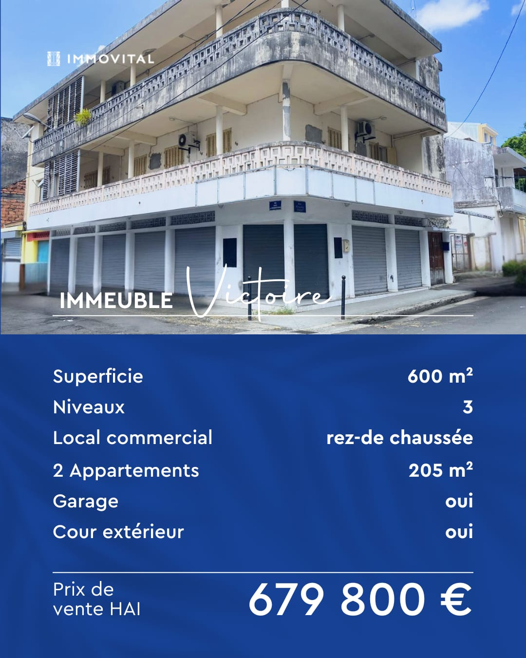 Votre agence IMMOVITAL vous propose à la vente cet immeuble de rapport exceptionnel, situé à l'angle de la rue Alexandre Isaac et de la rue Gilbert de Chambertrand, un emplacement stratégique au centre-ville de Pointe-à-Pitre.
