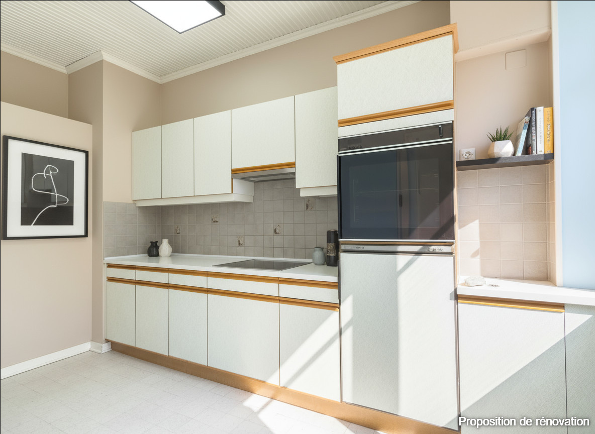 L'entrée dessert une agréable pièce de vie de 27m2 environ avec accès à un balcon, ainsi qu'une cuisine indépendante de 9m2 environ, prolongée par une loggia de 6m2 environ, idéale pour une buanderie ou un espace de rangement supplémentaire.