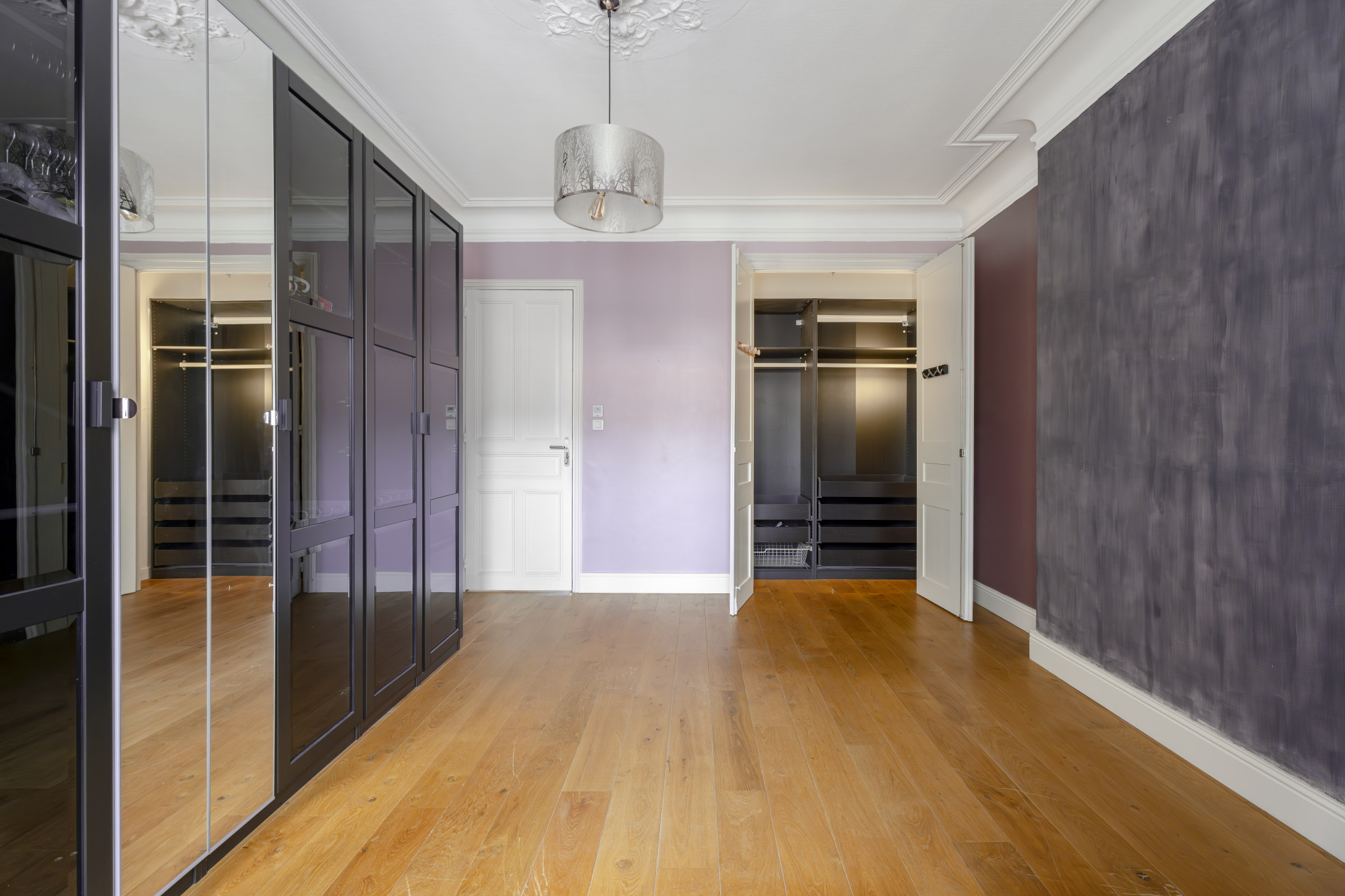 L'espace de vie, orienté plein sud, bénéficie d'une belle hauteur sous plafond et d'une lumière naturelle exceptionnelle. La cuisine américaine, entièrement équipée, s'ouvre sur un salon raffiné, idéal pour recevoir. L'appartement offre également quatre chambres avec rangements, une élégante salle d'eau avec douche à l'italienne double, un système de climatisation gainable, des cheminées en marbre, ainsi qu'une porte blindée pour une sécurité optimale.
