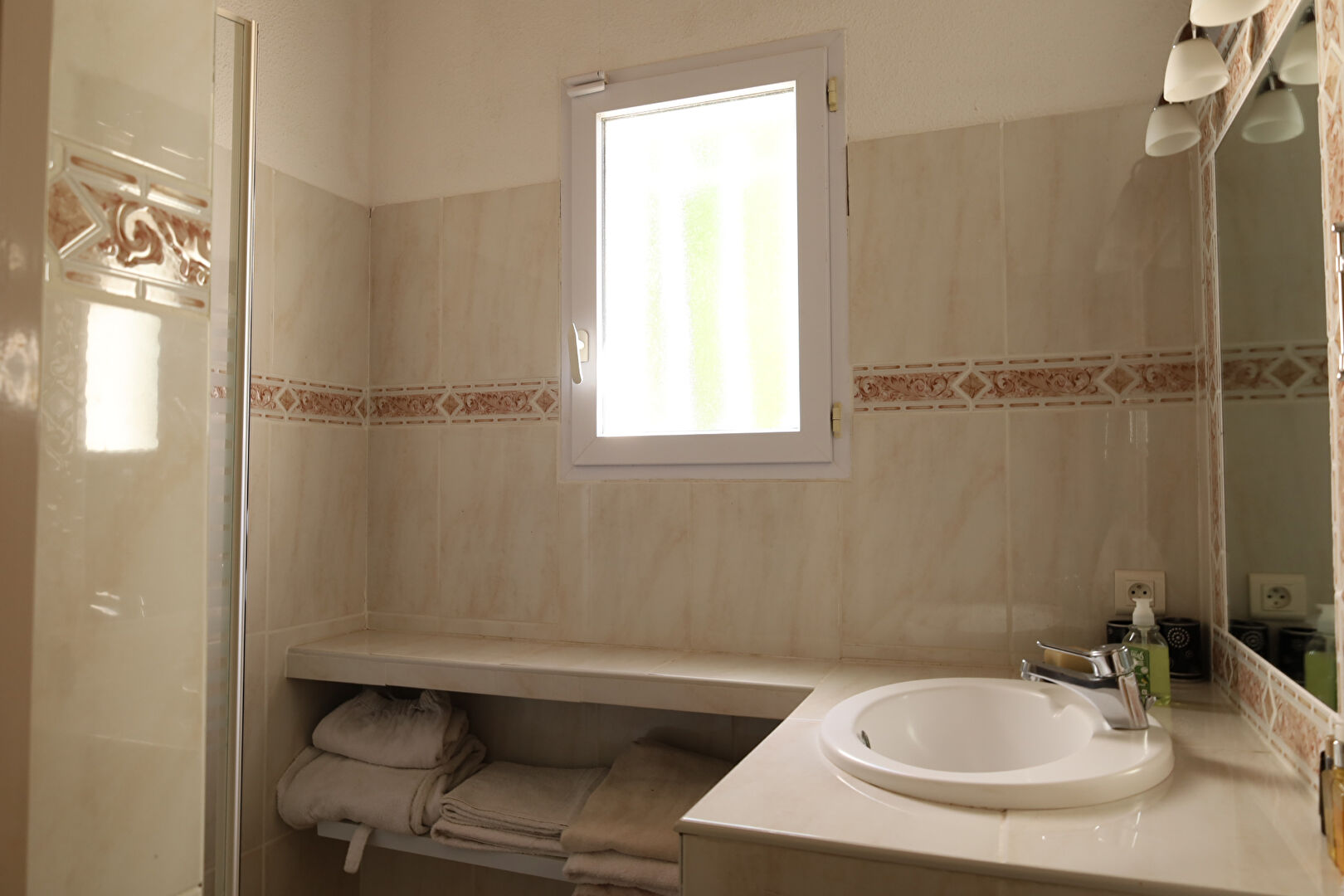 À l'extérieur : une terrasse plein sud avec vue dégagée, une seconde terrasse à l'abri des regards, une piscine sans vis-à-vis, un sous-sol total, et un accès direct à l'espace protégé Natura 2000.