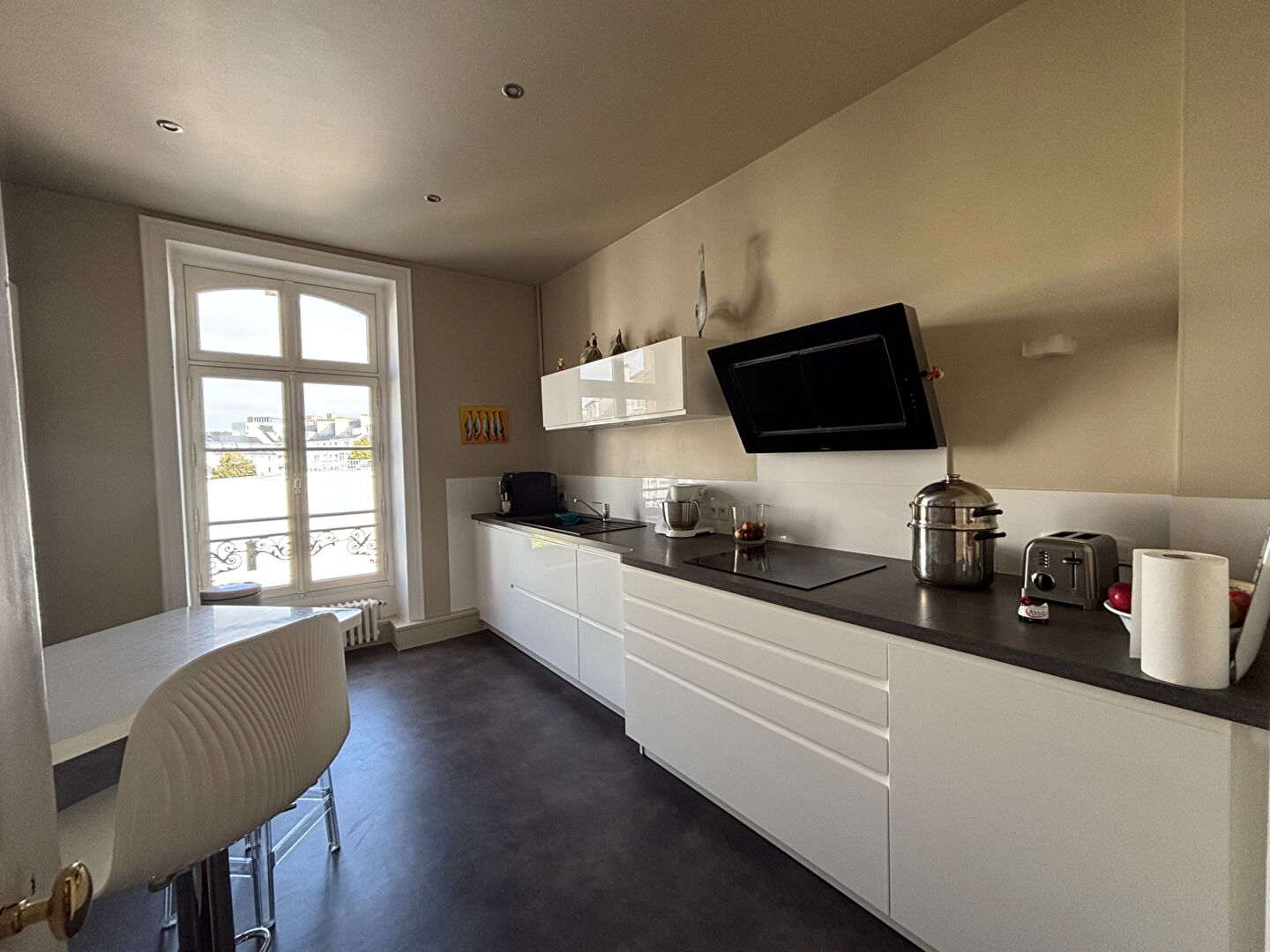 - Cuisine rénovée moderne équipée avec des matériaux et électroménagers de qualité.